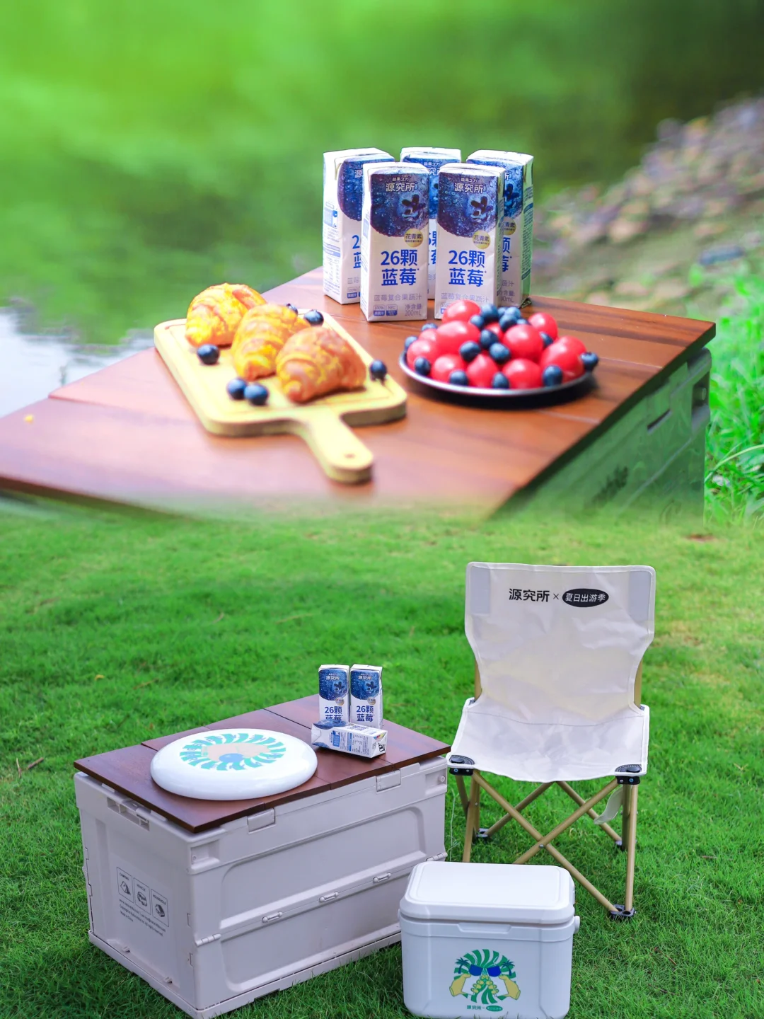 蓝莓、圣女果、牛角包、源究所蓝莓汁……