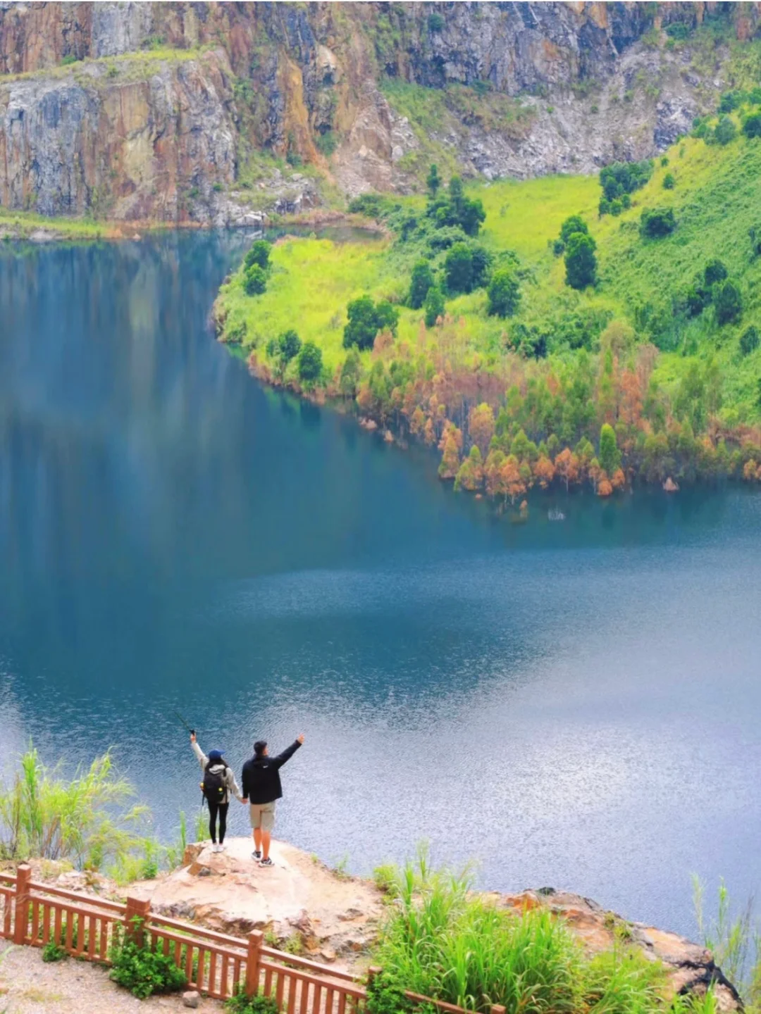 这里是广州“天池”,由两个石矿坑组成的,水很蓝,很好看!