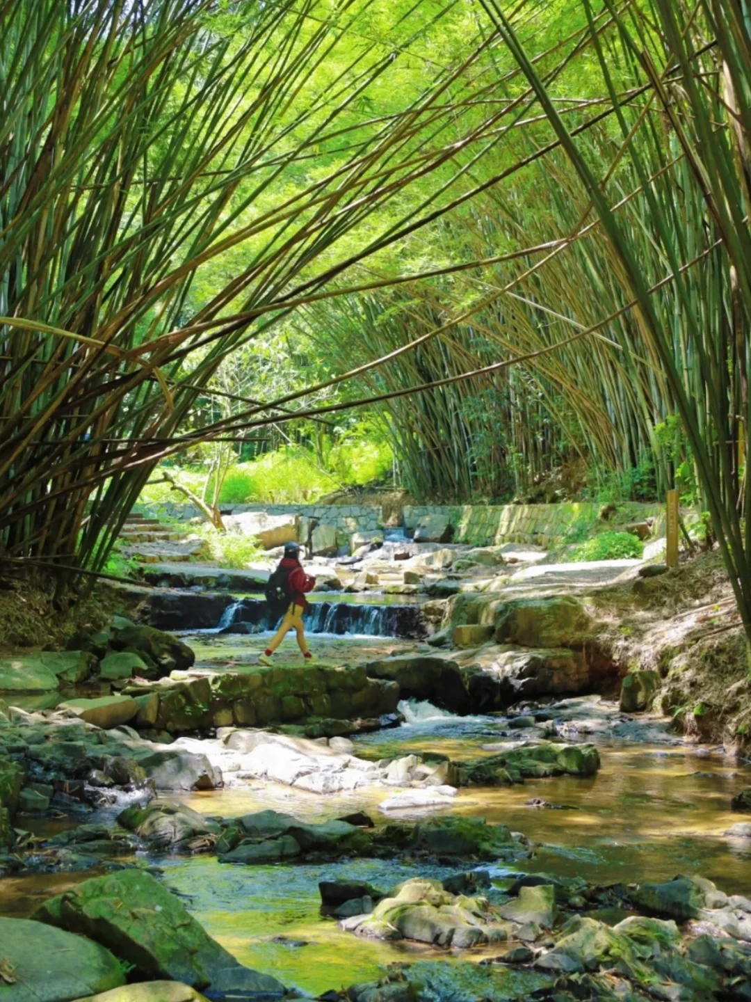 这里太适合夏天徒步了,两边都是竹林,几乎不会被晒到。这里还有一个小溪流,可以带上小孩过来溯溪玩水露营哦