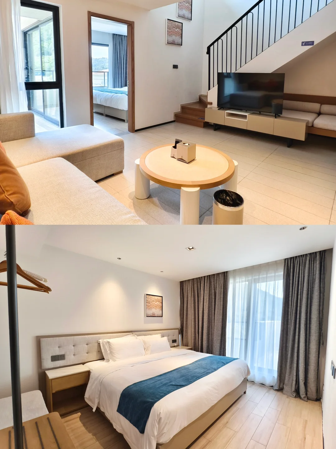 多人家庭出游,建议住小镇里的【蓝葡萄酒店公寓 】有二房或三房的复式公寓可选,可入住6大3小,有厨房、大客厅、大露台、双卫,一家子住在一起真的热闹好玩很多哦!住蓝葡萄还配春沐源龙骨乐园门票➕温泉门票➕自助早餐!
