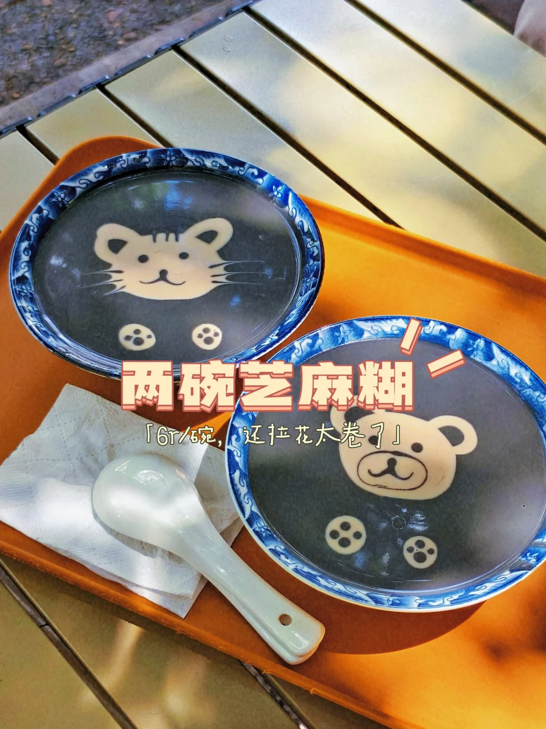 🔸石磨两碗芝麻糊:6r一碗的芝麻糊,竟然还有拉花!真的太卷了!而且很丝滑很香芝麻味,好吃