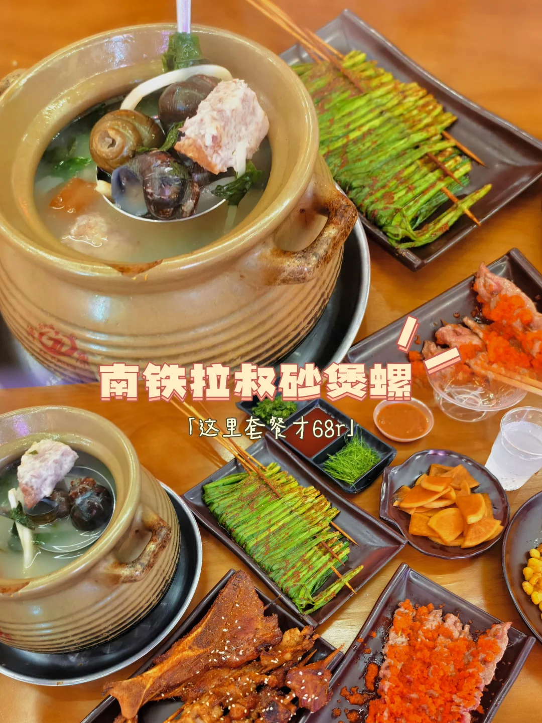 🔸南铁拉叔砂煲螺:大只田螺配上荔浦香芋和紫苏,这口汤贼鲜