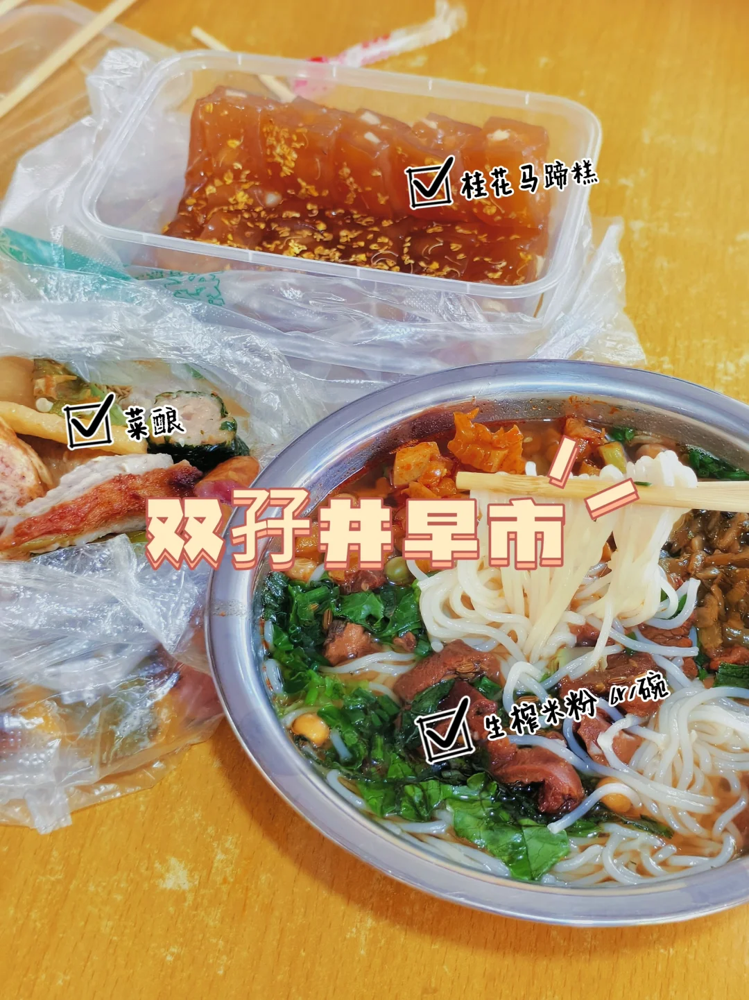 🔸双孖井早市·上林生榨米粉:南宁特色米粉,这家一个当地爷爷推荐的,说这家料多好吃且便宜,才6r一碗!(还在早市买了菜酿和糕点,味道也不错)