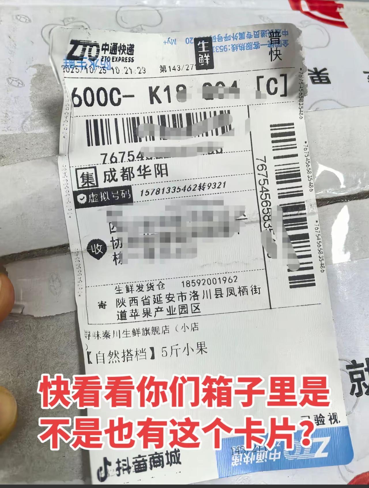 某公司的“贴牌”苹果这是卖不出去了? 商家把他们的苹果发给与辉同行的客户。 问我怎么知道, 呵呵呵, 与辉同行的消费者收到苹果, 箱子里竟然有一张某选贴牌的卡片。 我笑死个人了, 这不是说他们的贴牌供不应求吗? 怎么还有多的包装和苹果? 这样的事情发生了不是一次两次了, 这说明了什么? 说明了两个问题, 第一就是他们的贴牌水果销量并不好, 商家只能把他们定下的商品发给与辉同行消费者。 第二就是说明他们所谓的自营品水果, 并没有什么“高大上”, 水果供应链都是一个商家。 他们直播间的各种吹嘘, 其实都是大忽悠而已。 自营品水果和与辉同行的并没有特别之处, 但是价格比与辉同行要贵。 小果一单(5斤)贵5.1元, 中果大果(5斤)都要贵9元, 产品没有什么特别的, 价格贵的理由是什么? 产品粉们能不能出来解释一下! 你们不要只是闭眼入啊, 也要张大眼睛看, 长个嘴巴解释一下啊。 欢迎“真爱粉”们来给告诉我一声。 散会!