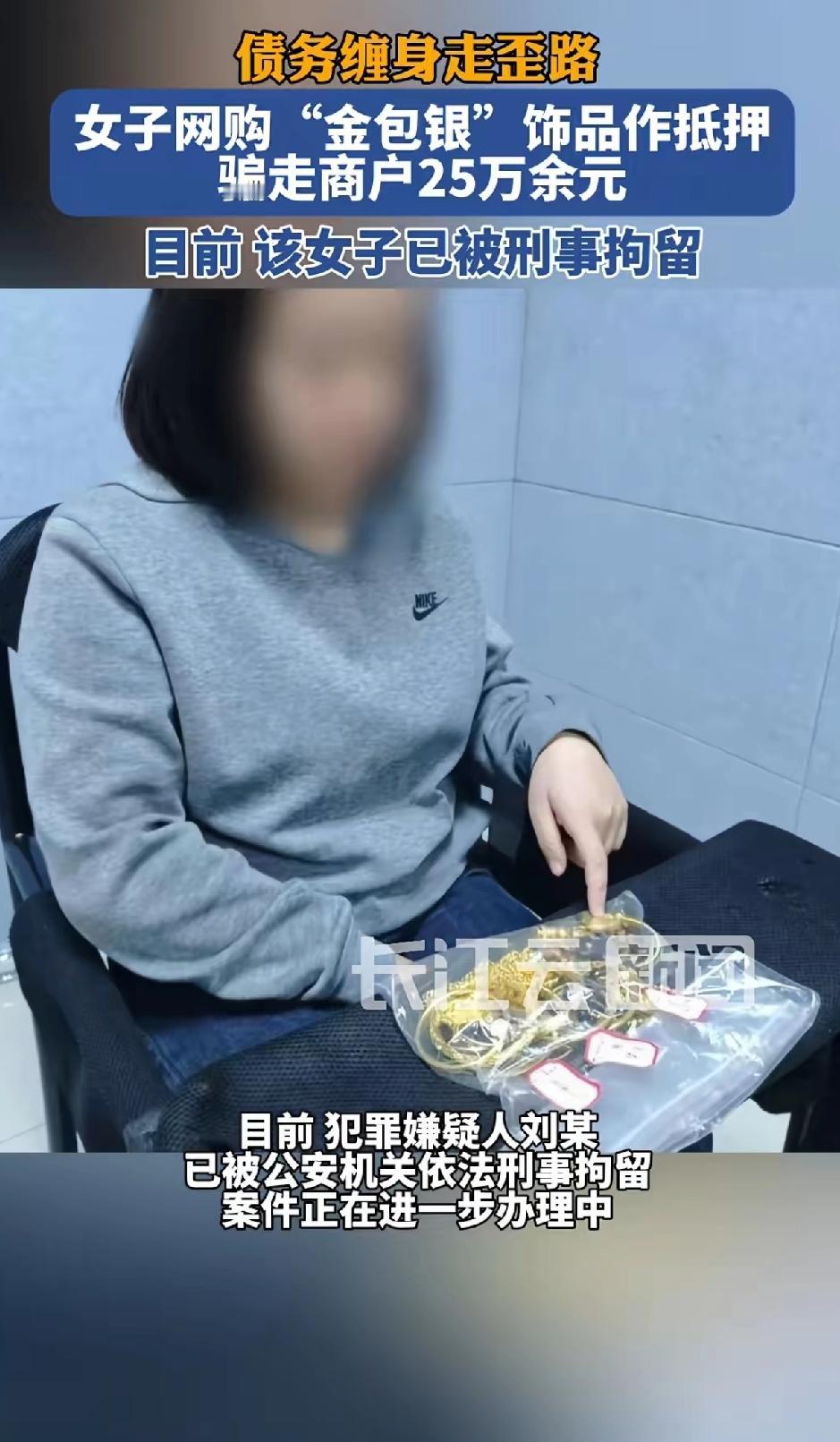 债务缠身走歪路,女子网购“金包银”饰品作为抵押物骗走商户25万余元。 目前该女子