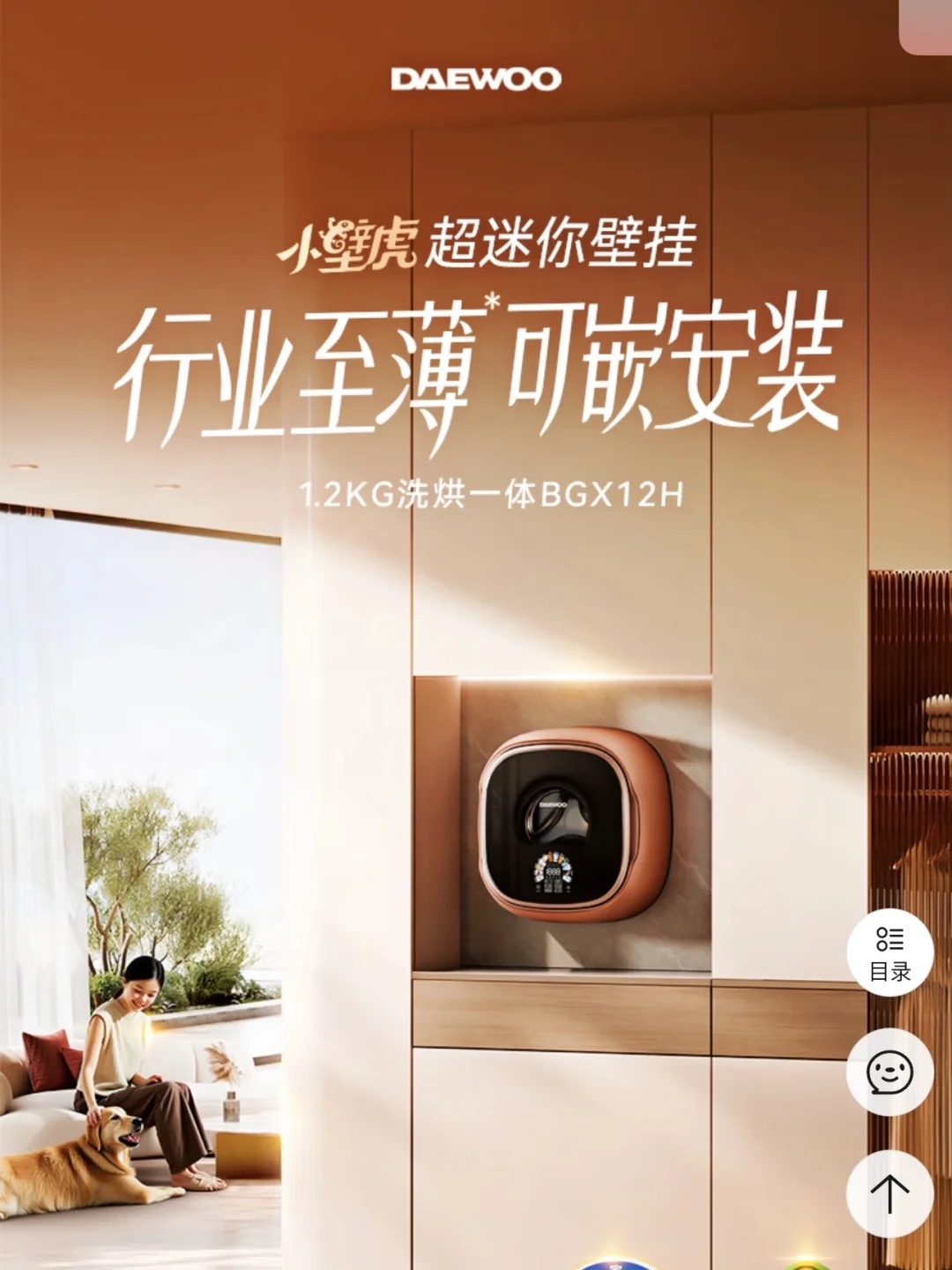 大宇婴儿壁挂式超薄迷你洗衣机DY-BGX12H:带娃家庭的手洗解放神器作为天天跟衣物“战斗”的蜘蛛侠,最懂壁挂洗的香!这款大宇壁挂洗直接刷新我对迷你洗衣机的认知——261mm至薄机身,挂在卫生间墙上完全不占地,跟我家小户型完美适配,再也不用为放洗衣机腾地方。