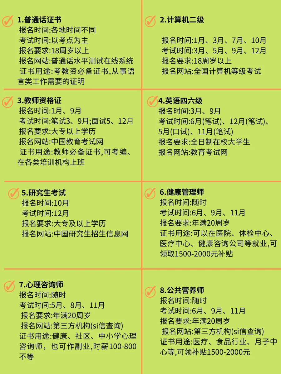 2026年考证时间表,想提升就去考证书吧!