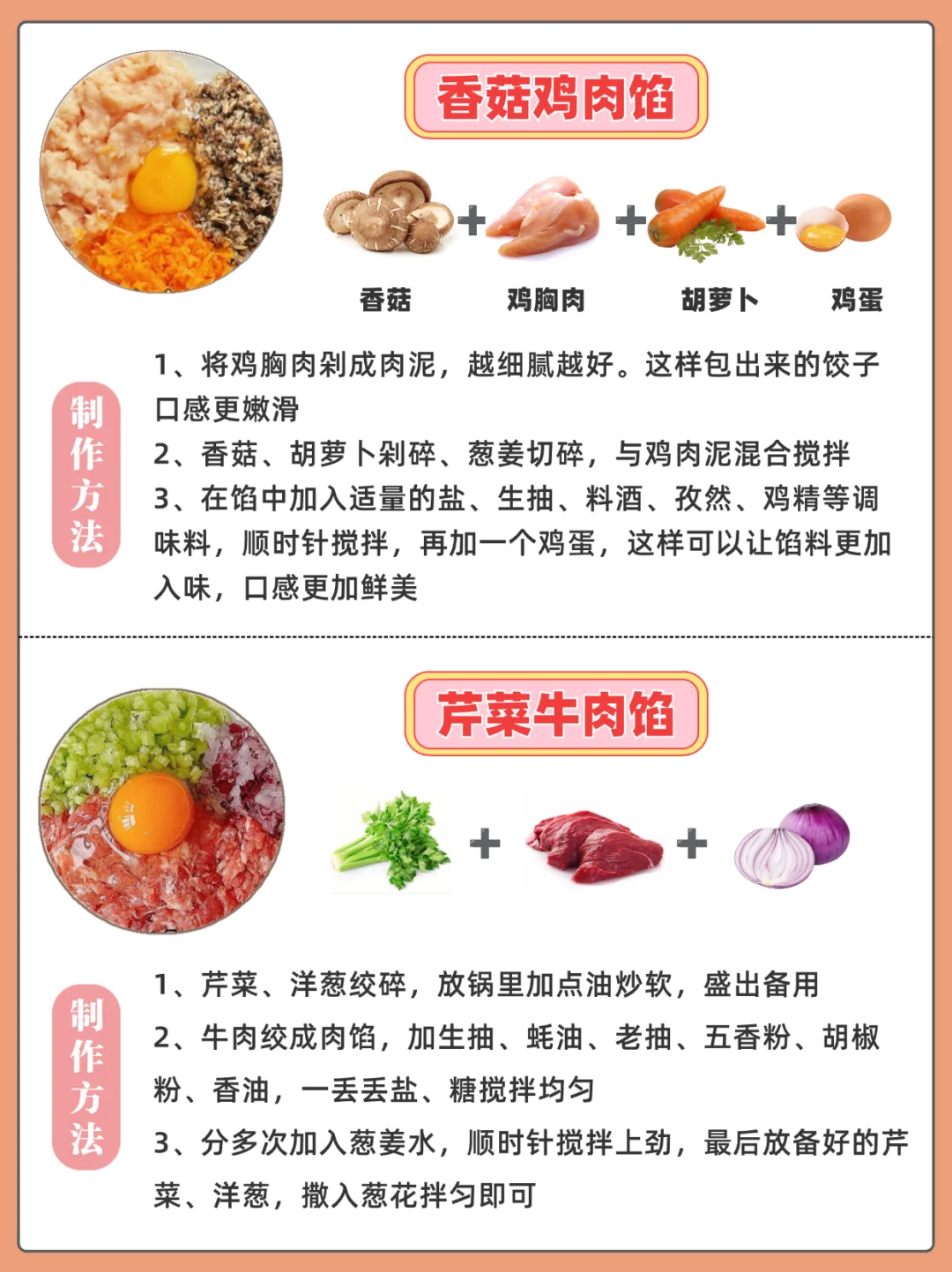 好啦!不管是冬至还是过年,或者平时爱吃饺子的,一年不重样的饺子馅大家赶紧动手做吧!