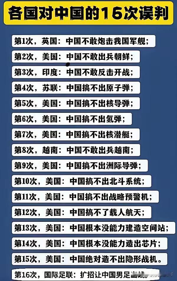 网友总结,七十多年来,世界各国对中国人,有过16次误判。 每误判一次,中国就前