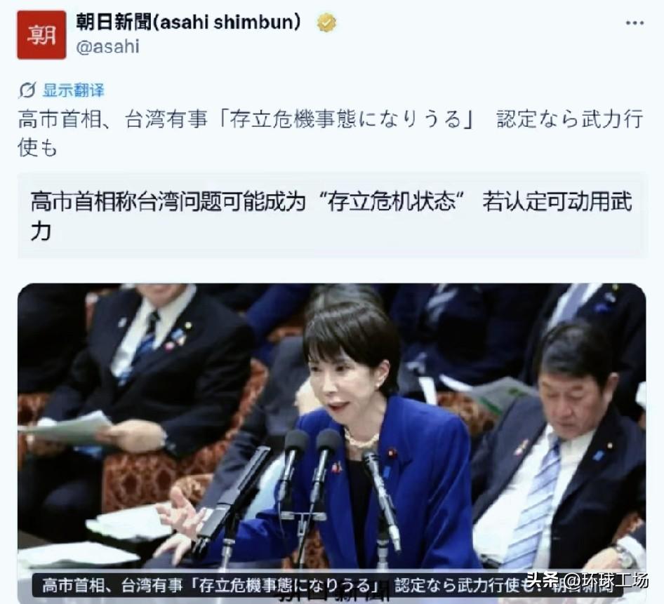 日本首相高市早苗刚刚表示:如果中国对台湾实施海上封锁,这可能被认定为危及日本生存的情况,自卫队可以根据具体情况决定是否动用武力。 高市早苗7号在日本众议院会上这么说,台湾有事,日本自卫队介入,话说得太狂妄了,台湾问题纯属中国内政,什么时候轮到日本说三道四了? 有网友一针见血地评论:“自家里正商量着事,隔壁邻居拎着枪就想闯进来,这算哪门子道理?”这话虽然打个比方,却说到了点子上。 看看历史就知道,日本对台湾从来就没死心,日本曾在台湾殖民统治数十年,屠杀了60万台湾人,犯下无数罪行。如今见不得两岸走近,又开始搬弄是非。 日本无非曾在台湾殖民统治50年,部分势力至今仍抱有"台湾情结",总想找回当年的影响力,担心自己的海运航道对外贸易和能源受制于中国,再者急于充当美国盟友“急先锋”,乘机介入和提升自己在台海的势力。 要我说,这事得让更多人知道!咱们普通老百姓虽然不参与政治,但维护国家统一的心从来不变,台湾永远是中国的一部分,这个底线谁都不能碰。 (大家怎么看待日本这番言论?你觉得我们应该如何回应这种挑衅?欢迎各位看官老爷们在评论区说出来~)
