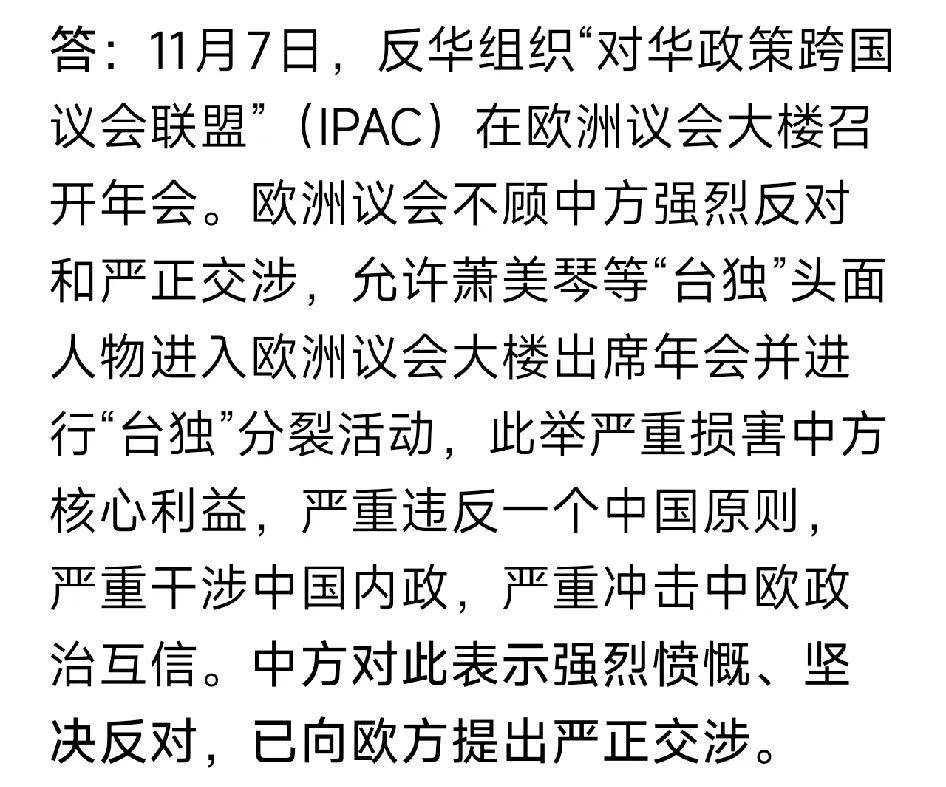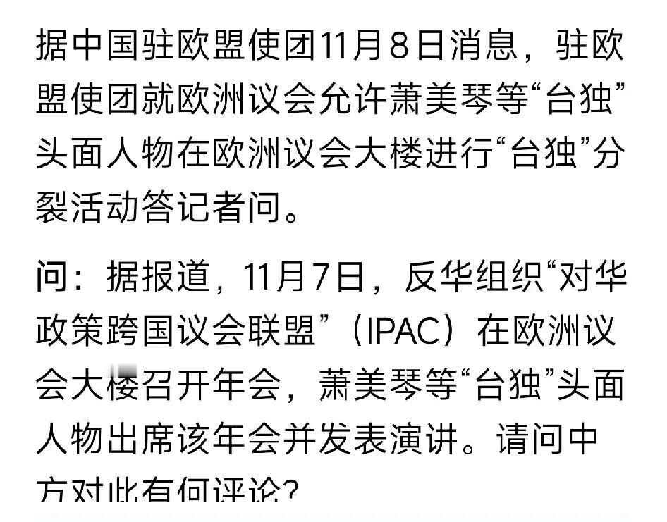 欧洲议会这波操作,简直是在玩火自焚!前脚刚和咱们签完经贸大单,后脚就让"台独"分子溜进自家大楼开"分裂大会"。要我说啊,这操作就跟"癞蛤蟆趴脚面——不咬人膈应人"似的,明摆着给某些人递刀子。 咱先说清楚,台湾问题就像咱家祖传的宝贝疙瘩,谁敢伸手就是砸场子!11月7日欧洲议会那帮人硬是让萧美琴之流登堂入室,这哪是"民间交流"?分明是揣着明白装糊涂。要我说,这帮政客怕不是把台湾当成了"过家家"的积木,想搭就搭? 不过别看他们闹得欢,咱们可不是吃素的。外交部这次直接甩出"三连击":第一拳打脸说"这事儿严重干涉内政",第二拳警告"别当台独保护伞",第三拳拍桌"必须马上纠正错误"。要我说,这力度堪比给某些人泼了盆冰水,让他们清醒清醒。 说到做到,中方这次可是动真格的。去年捷克议长窜台,咱们直接让他"吃不了兜着走";今年欧洲议员又来这套,直接列入"黑名单"。就像菜市场砍价——你砍一刀,我回三刀,看谁能耗得过谁。 岛内某些人别以为抱上大腿就能上天。萧美琴之流在欧洲议会蹦跶,结果被网友扒出经费都是美方赞助,活脱脱现代版"皇帝的新衣"。要我说,这帮人就是"癞蛤蟆想吃天鹅肉——痴心妄想",台湾同胞可都看着呢! 大陆这边早布好了天罗地网。经济上用RCEP把台湾企业"绑"在发展快车上,法律上《反分裂国家法》就是定海神针。就像给台独分子套上缰绳,看他们还怎么撒欢。 最后说句掏心窝子的话:台湾同胞们,咱可别被"台独"忽悠瘸了!看看现在两岸直航航班天天爆满,台胞在大陆创业减税又补贴,这日子过得不比某些政客画的大饼实在?跟着分裂势力跑,那不是"捡了芝麻丢了西瓜"吗? 信息来源:中国驻欧盟使团声明、国台办回应、外交部表态、国务院台湾事务办公室公告欧盟 欧盟委员会 欧盟会晤 欧盟新法案 中国欧盟谈判 欧洲欧盟 荷兰议会跳衅