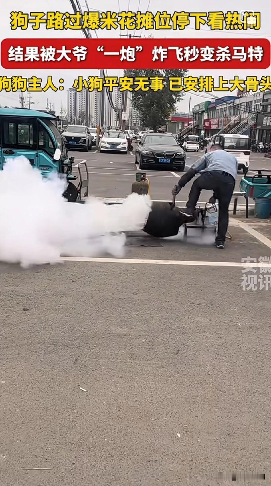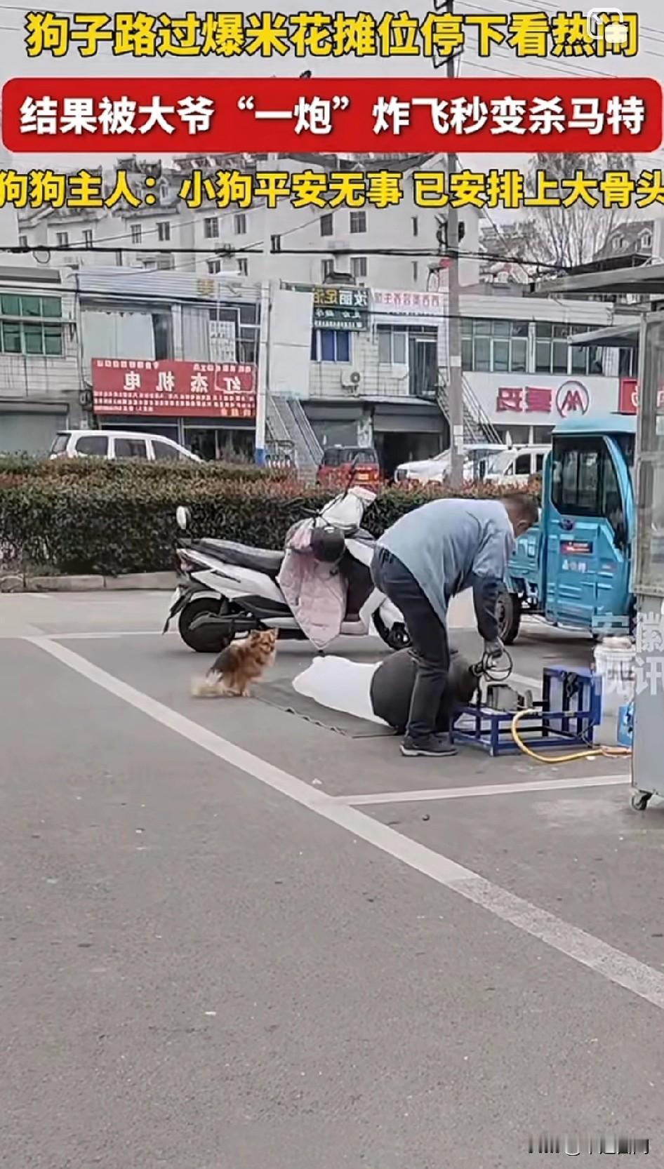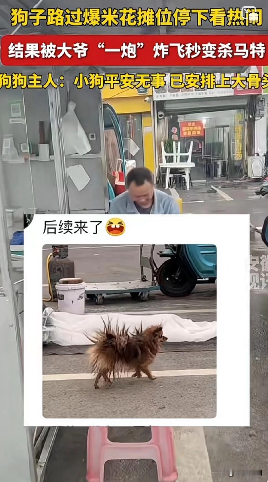 好奇的狗子后续[捂脸] 狗子路过爆米花摊位停下看热闹,结果被大爷“一炮”炸飞秒变杀马特。狗狗主人:小狗平安无事已安排上大骨头。狗:大爷给我来个离子烫,大爷:好累……砰……🐶…… 小狗说坐那歇一会,看大爷干嘛的。然后的一炮崩下去。干懵逼。