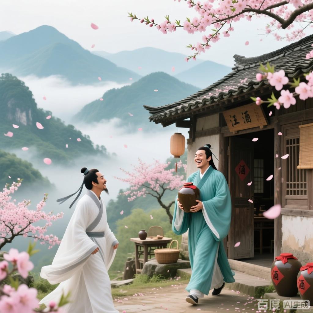 谁能想到,李白和汪伦的友谊,开始一场骗局......唐朝天宝年间,汪伦听说大诗人李白,暂居南陵叔父李冰阳家,便给他写了一封信,“先生好游户?此处有十里桃花。先生好饮乎?此处有万家酒店。”李白一听,马上出发。 李白最爱喝酒,又喜欢旅游。 汪伦的信,让他心荡神驰。十里桃花,万家酒店,简直人间仙境!于是按着信上的地址就去了。 汪伦在一个小酒家接待了诗仙。 周边却不见十里桃花、万家酒店?汪伦笑呵呵从家里出来,拿起一坛酒说,“这酒,使用十里外桃花潭水所酿,所以叫十里桃花。至于万家酒店嘛,这家店主人姓万。” 李白哈哈大笑。 一来只要有美酒他便高兴,但更重要的是,他喜欢汪伦洒脱不羁的性情。当时又正是春暖花开之时,潭水幽澈、山峦叠翠、无处不飞花,李白与汪伦畅游山水,饮酒赋诗,流连忘返,结下了深厚的友谊。 分别时,汪伦送了李白八匹名马,官锦十匹。 这可是很大一笔钱!比现在直播间的榜一大哥们还豪横! 不仅如此,汪伦还带着村里的乡亲们都来送李白,大家一起双脚在地上踏着节拍,唱着歌,这场面,比明星大腕的疯狂粉丝团阵容强大。现在粉丝团只会举着牌子大喊我爱你。汪伦组织的粉丝团,可是要排面有排面,要品味有品位! 李白在船上听见歌声,十分感动,留下了一首现在全国小学生都必须背的诗——《赠汪伦》。 李白乘舟将欲行, 忽闻岸上踏歌声。 桃花潭水深千尺, 不及汪伦送我情。 汪伦一个小小县令,本不会被载入史册,但却因为李白,名垂千古。粉丝变成好友,并被诗仙李白赠诗,他是幸运的。但这幸运,并不来自于豪横打赏,而是因为他了解李白。知道李白狂放,不会计较自己的小手段,而无论是桃花潭水,还是桃花酿,还是春日飞花,都足以让李白沉醉。这一段邂逅,本就是诗。 (图片AI生成)