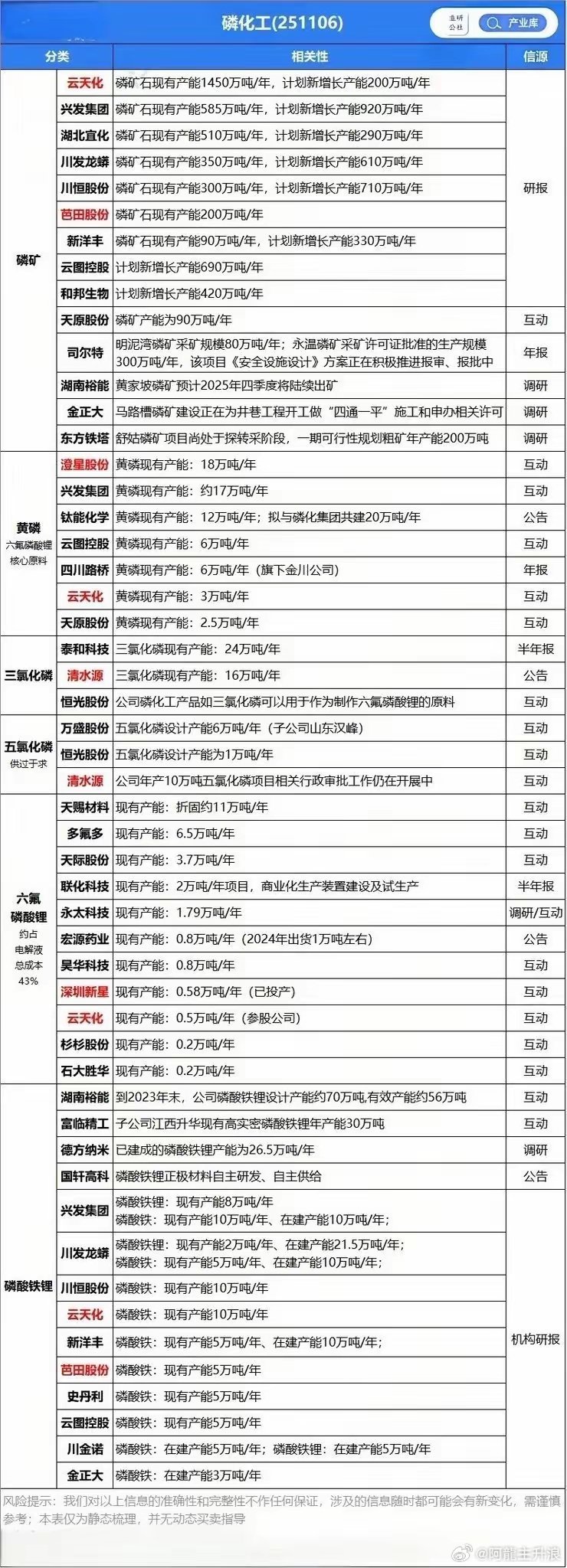 近期磷化工产业链景气度提升,受黄磷等原材料涨价及储能需求爆发双重驱动。六氟磷酸锂因磷酸铁锂需求激增出现供不应求,价格大幅上涨,叠加碳酸锂成本下行,行业盈利预期改善。预计其供需紧平衡格局将延续至2026年。