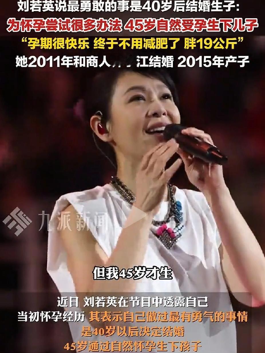 刘若英坦然说 自己这辈子最勇敢的事, 不是开巡回演唱会,而是40岁后才结婚生子,为了怀上孩子,那些常人难以忍受的苦,她全扛了下来。 谁能想到,舞台上从容洒脱的“奶茶”,背后藏着这么多不易。40岁本就是高龄产妇的门槛,她为了受孕,反复尝试人工受孕,打针、吃药成了日常,身体的不适和心理的压力,没对外抱怨过一句。直到41岁生下儿子,她才松了口气,说“这份晚来的幸福,值得所有等待”。 现在总有人用“年龄”绑架女性,觉得“到点就得结婚生子”。但刘若英就是最好的例子,她没被世俗眼光裹挟,39岁遇真爱,40+生子,事业家庭都没耽误。 其实勇敢从不是按别人的剧本活,而是不管多大年纪,都敢追求自己想要的生活。 你觉得女性的“最佳生育年龄”该被定义吗?如果是你,会选择早婚早育还是遵从内心节奏?来评论区聊聊~