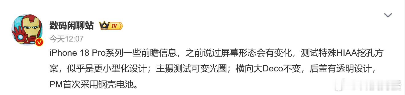 iPhone18Pro系列前瞻曝iPhone18Pro灵动岛将缩小,这灵动岛也该改改了,岛小了,屏幕冲击力更大。