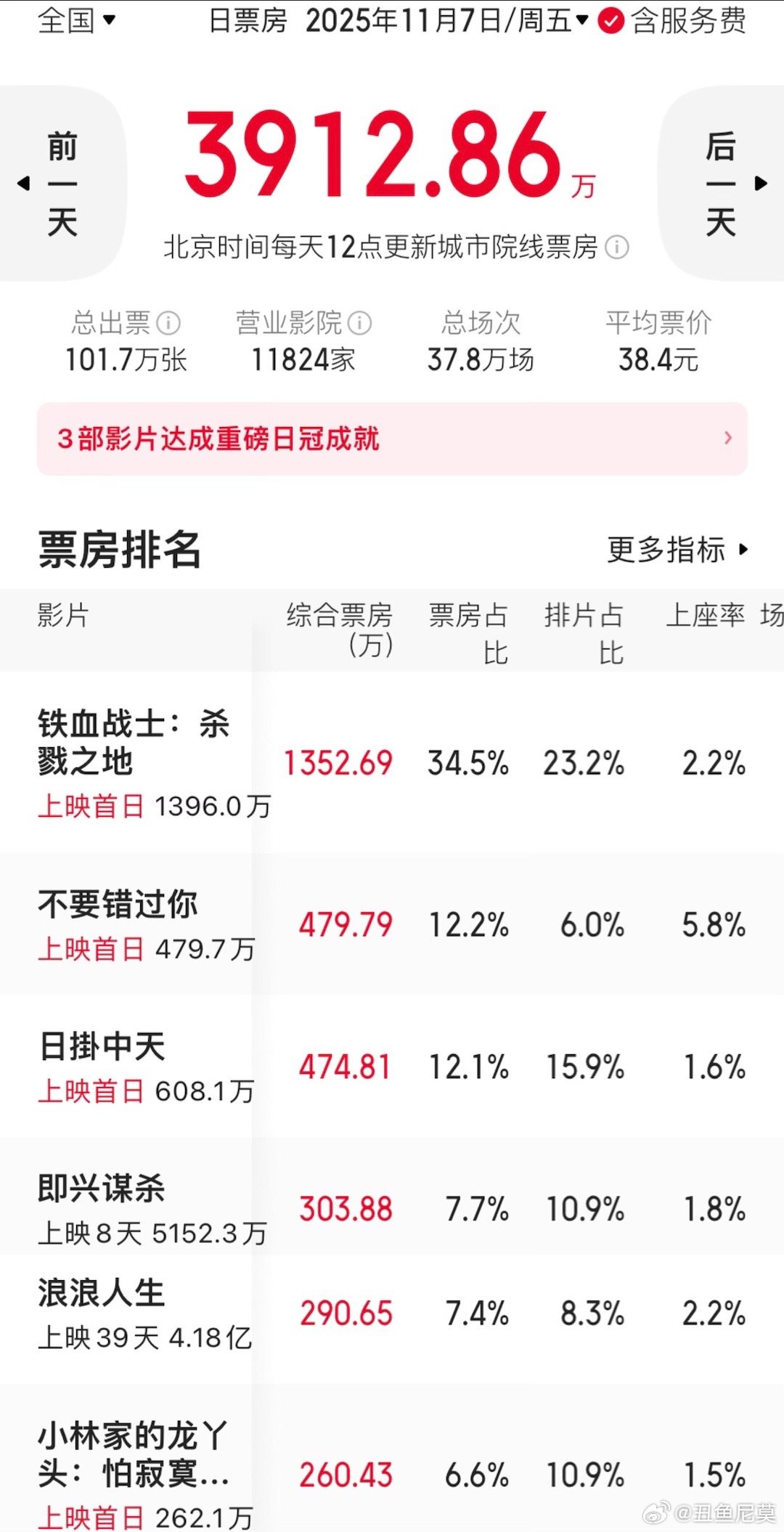 日掛中天票房倒挂 《日掛中天》今天继续倒挂,可能还不如昨天。由于上映首日票房表现欠佳,《日掛中天》今天的排片率降了3.6个百分点。《日掛中天》目前上座率1%,倒挂依旧厉害。单日票房目前排位在第七。《浪浪人生》有可能逆袭成单日票房亚军。