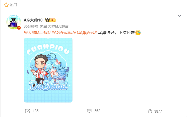 鸟巢:欢迎AG常来“进货”冠军!大帅鸟巢很好下次还来