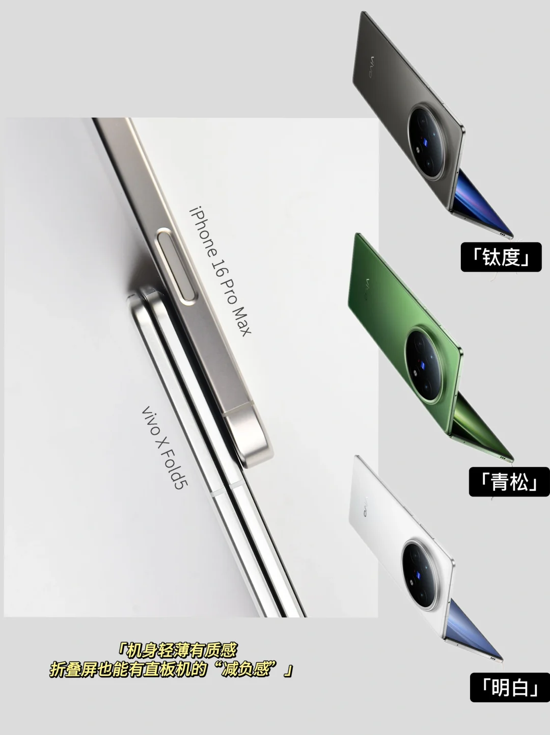 vivo X Fold5颜色也很很多选择「明白」、「青松」、「钛度」 都很好看!!