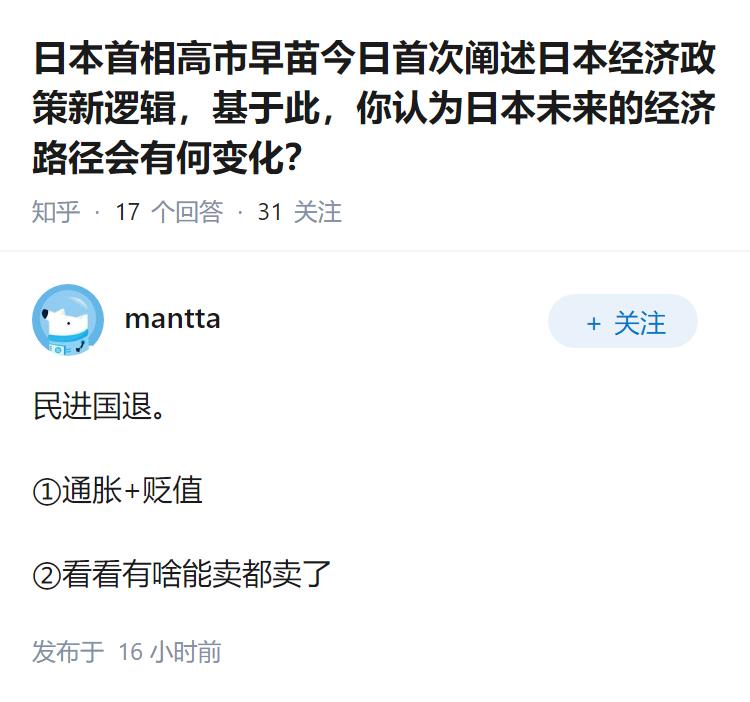 日本首相高市早苗今日首次阐述日本经济政策新逻辑,基于此,你认为日本未来的经济路径会有何变化?