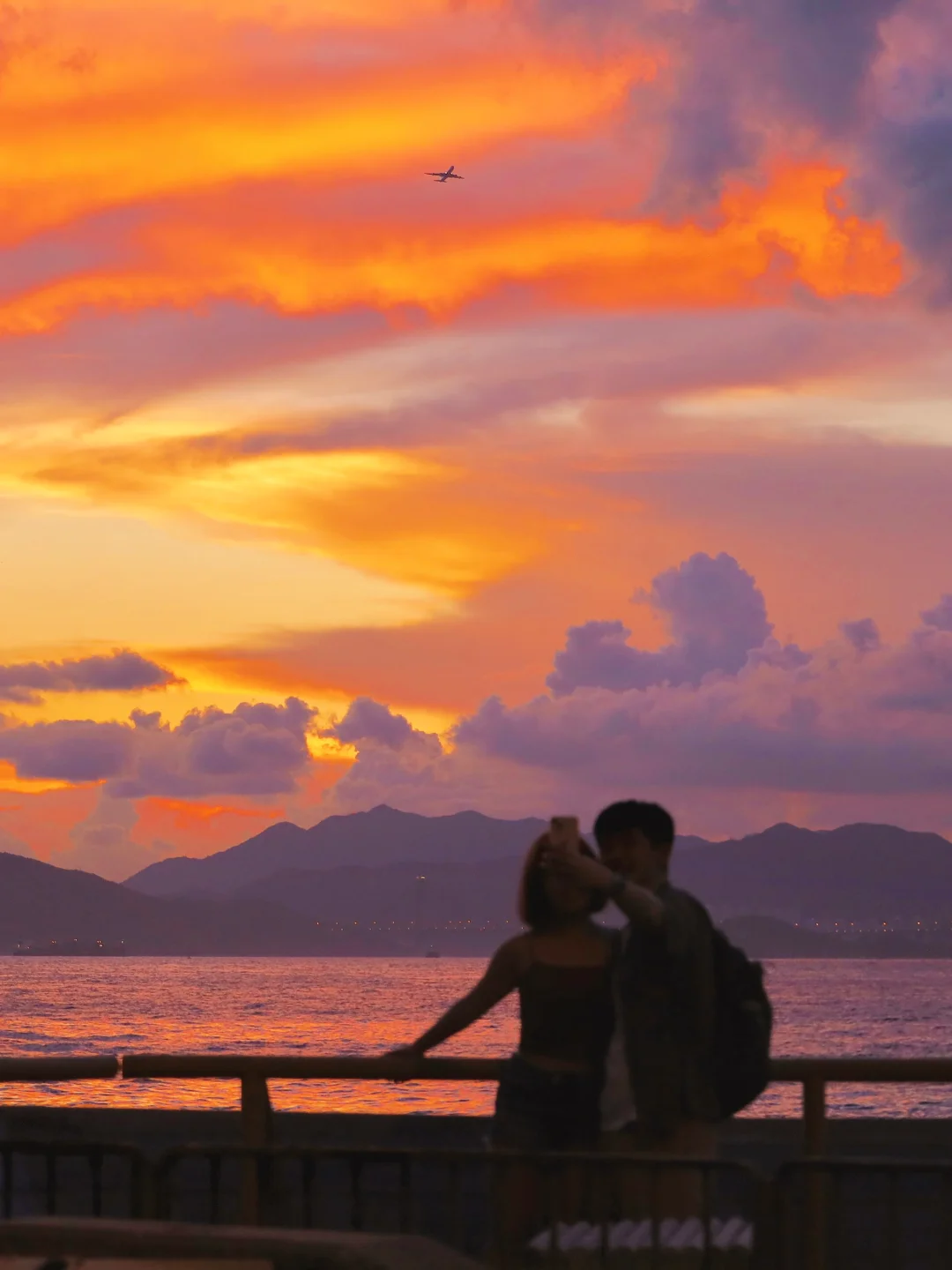 和朋友过来香港游玩 巧遇这夏季海边火烧云晚霞 真的有被治愈到💕 - 橘粉色的天空🌄 偶尔在天空划过的飞机✈️ 在海边路来往的叮叮车🚎 在欣赏晚霞自拍的小情侣🤳 此情此景画面真的好浪漫!好唯美! - 📍香港特别行政区中西区坚尼地城 🚇港岛线“坚尼地城站”C出口 -