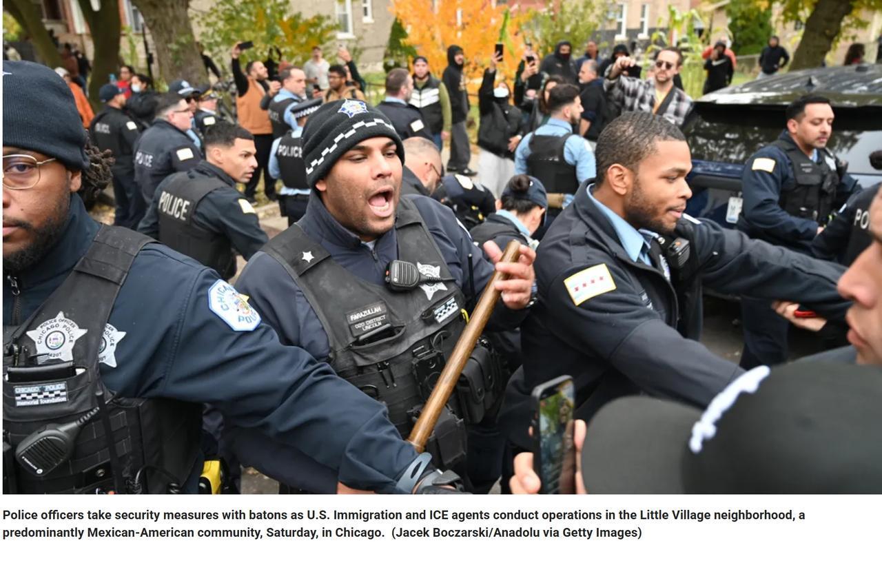 美国联邦特工在执法行动中遭到枪击 美国国土安全部 (DHS) 称,当地时间周六,边境巡逻人员在芝加哥进行移民执法行动时,一名驾驶黑色吉普车的男子向特工开枪并逃离现场。枪击事件发生后,多个社区的联邦特工被人群包围,人群向边境巡逻车投掷油漆罐和砖块。 第 22 选区的市议员迈克尔·罗德里格斯 (Michael Rodriguez) 在 Facebook 上发布了一段视频,指责特工“制造各种混乱”。他说:“他们正在做违宪、非法的事情,他们在我们的社区中造成恐惧和混乱,这是不可接受的。” 第 25 选区的市议员拜伦·西乔-洛佩兹 (Byron Sigcho-Lopez) 也在社交媒体上直播了这场混乱。西乔-洛佩兹似乎与执法特工对峙,质问他们为什么来到这个社区。 芝加哥警察局 (CPD) 接到请求援助并清理了现场。枪手仍然在逃。 国土安全部在 X 上的一份声明中写道:“这起事件并不是孤立的,它反映了暴力阻碍的日益增长和危险的趋势,在过去的两个月里,我们看到行动期间针对联邦执法部门的袭击和阻碍有所增加。”