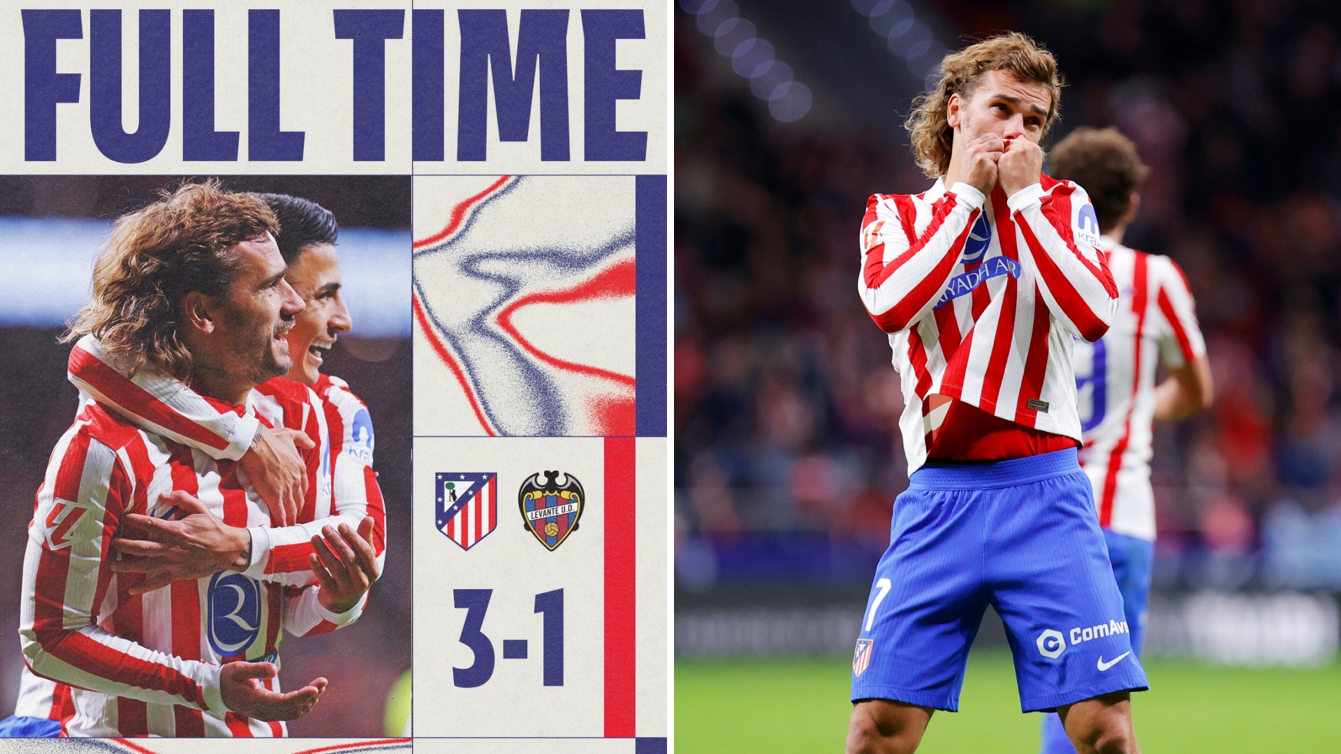 西甲:马德里竞技3-1击败莱万特,4连胜+11轮不败。 巴里奥斯传中造乌龙,格列兹曼替补完成双响。