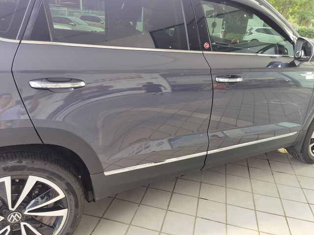 今天发布一个谜一样存在的情况,不看遗憾 买新车2022途岳330旗舰,得瑟了两个多月近三个月了。但是周六进院落时,右转碰擦了电动门(附图),擦,老司机也是阴沟里翻船!其实没换车时,那晶锐被我碰撞的凹陷都懒得去修,多少年的擦痕也不搞,不过这次不同,新车啊新车,怎么烦也得报保险去修啊,好吧,周日到4S修车,做漆、换轮眉,顺利妥当。 然而,重点来了,取车时,维修经理说了句,你的车门下护板换过吗?啥?我换车门下护板干嘛?但是一边有镀铬亮条,一边没有啊...晕,新车还能这样吗?仔细一看,居然真的,有图为证。立即电话问销售,也搞不清为什么,不应该出现的情况出现了,难道生产线装配工装一面换个人再装么?难道没有质检?