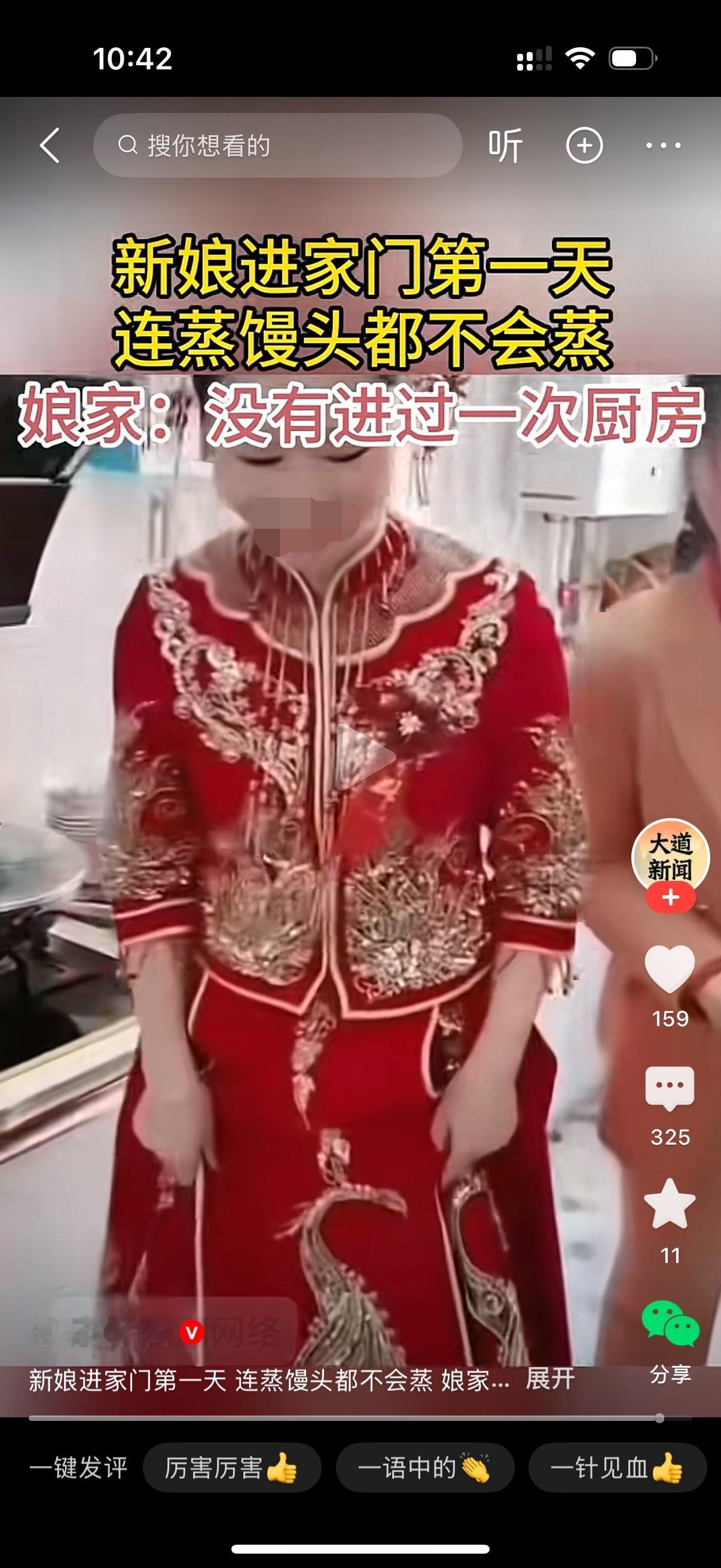 新娘进家门第一天,连个馒头都不会蒸。不会蒸也就算了,倒个馒头还全倒地上去了。婆婆看到这一幕,实在忍不了,这娶的哪是儿媳,这是娶了一个祖宗。以后儿子的日子可咋办?婆婆怂恿儿子提出要退婚。儿子也答应了不要这个啥都不会的老婆。儿媳却不干了,说要退婚也可以,男方家全款买的新房归自己,彩礼也不可能退。男方一家也懵了,蜕也推不得,要也要不得。