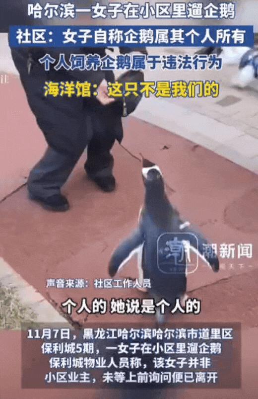 天下之大无奇不有!哈尔滨一女子在小区遛弯,突然发现前方出现一只企鹅,她起初以为是动物园跑出来的,结果看到,是一个陌生女子在溜企鹅,物业询问后,女子说这企鹅是个人的! 哈尔滨小区的便道上,最近炸开了锅。 一位穿厚羽绒服的女子王女士(化名),正牵着只半大企鹅慢慢走。 企鹅黑毛油亮,圆鼓鼓的白肚皮晃来晃去,走两步就伸长脖子,吃女子手里递的小鱼。 这场景直接看傻路人,大家纷纷掏出手机拍照,议论声此起彼伏。 “活久见!企鹅居然能在小区里遛?”“这宠物也太奇特了吧!” 女子倒是淡定得很,有人问起,只轻描淡写说 “是自己的”。 至于企鹅从哪来、怎么买的、为啥带到小区,她一个字都不肯多讲。 可这可不是普通小猫小狗,随便养养就行。 专家一看就急了:多数企鹅品种,像帝企鹅、阿德利企鹅,都在《国家重点保护野生动物名录》里,属于二级保护动物。 《野生动物保护法》第 25 条写得明明白白,个人根本不能私自饲养。 女子这行为,已经涉嫌违法了。 当地海洋馆很快回应,说这只企鹅不是他们的。 林业部门也已经介入,正在调查企鹅的来源。 毕竟南极来的动物,怎么会出现在城市小区,背后大概率藏着非法交易的链条。 网上还有人抬杠:“哈尔滨天这么冷,企鹅本来就耐寒,养着不算虐待吧?” 这话可就错得离谱了。 企鹅能不能耐寒是一回事,能不能适应家用环境是另一回事。 它们生存条件要求极高,得有恒定在 - 2℃到 2℃的低温环境,还得有足够大的含盐水池。 食物也不是随便喂点小鱼就行,得是新鲜磷虾,营养得跟得上。 家里这点空间和条件,看着是让它 “享福”,实则是在折磨它。 更严重的是,这种私养需求,会催生非法捕猎和走私。 盗猎者为了赚钱,不惜跑到南极破坏生态,捕捉幼企鹅偷偷运回来。 这对南极的野生企鹅种群来说,是毁灭性的打击。 之前就有类似案例,有人私养保护动物,最后不仅动物没养活,自己还被判了刑、罚了款。 说白了,这就是部分人的猎奇炫富心理在作祟。 觉得养猫狗太普通,养只企鹅、羊驼这种少见的,才能显得自己与众不同。 可他们忘了,法律和生态都有底线,不能为了自己的新鲜感,就无视规则、伤害生命。 其实遇到这种情况,大家别只顾着拍照看热闹。 首先得保持安全距离,别去触碰、惊扰动物。 然后赶紧报警,或者通知林业部门、小区物业。 你的一个举动,可能就能阻止一场非法交易,保护一只野生动物。 生态保护从来不是一句口号,而是实实在在的法律红线。 企鹅属于南极,属于大自然,不是用来彰显个性的 “奇趣宠物”。 尊重法律,尊重每一个生命,比任何炫耀都更有意义。 希望这次事件能给大家提个醒,别让一时的新奇,变成触犯法律、伤害生命的遗憾。 信息来源: 潮新闻