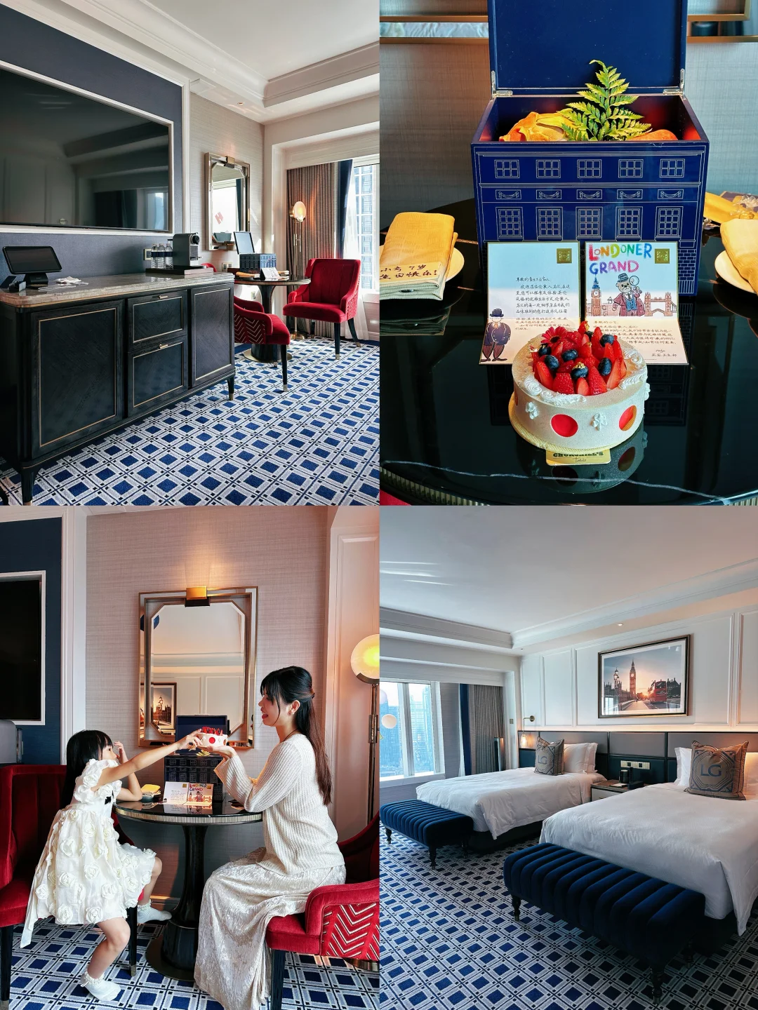 ◼关于入住酒店: 趁着娃与娃爸爸接连过生日🎂,特意来澳门安排两天一夜,就想好好放松一次,预定的伦敦人名汇酒店观景房,房间窗景能看到🗼巴黎铁塔,提前告知了酒店孩子过生日🎈让布置下,没想到酒店居然准备了超出我意料的惊喜,给孩子送了酒店的吉祥物🐶狗狗公仔,还有精美的🎂生日蛋糕,非常好吃!真的很用心了~ ◼关于吃吃喝喝: ①G Bear Cafe 记得凭伦敦人名汇房卡在一楼G Bear Cafe领取一杯☕葡挞阿法奇朵咖啡,不愧是明星同款,用料非常足! ②喜公馆 我们早餐、下午茶都在这里解决的,环境很好,菜品不仅好看,还很好吃,价格也不贵~ ③巴黎人蛋挞车 在巴黎人大堂偶遇澳门热门葡挞品牌的蛋挞车,不用排队,买了几个试试,真的各有特色,都超级香甜! ④汉普阁 是我种草很久的餐厅,不仅装修设计很奢华,重点是在澳门能把自助餐做成 “现点私厨” 感的,真没几家,还不限量,必点:🍲佛跳墙、🦞波士顿龙虾、🦐罗氏虾、鲍鱼、扇贝,还能选择不同做法哦~还有大闸蟹个个膏肥鲜美,爱吃蟹的有福啦! ⑤御莲宫 天气渐凉,御莲宫的海鲜火锅刚好安排上‼上菜的瞬间就能感受到食材新鲜,特色汤底选择很多,辣锅是广东人能接受的程度,不用担心上火,招牌🦐南瓜湿奶油炒虾球必点,蜜汁果木烟熏桂花鱼也很不错 ◼关于表演观赏: 都在伦敦人里面‼很集中‼很好找‼ ①金烁皇后⏰17:00、19:00 ②皇家卫兵换岗⏰18:00、20:30(周一休息) ③伦敦探索的士⏰12:00-20:00 ◼关于购物: ①这里的四大购物中心都是室内连通的,而且各有特色 想买奢牌的可以去四季名店,那里有全澳z大的LV旗舰店;威尼斯人购物中心的黄金一条街超级好逛,澳门金价+汇率很划算;离澳前可以去伦敦人购物中心买点澳门特色伴手礼,送人很合适 ②NBA旗舰店(伦敦人二楼) 喜欢篮球的🏀不要错过,里面很大,值得逛逛,有球星亲签的球鞋、篮球展示出售,还可以定制球衣、DIY球鞋👟