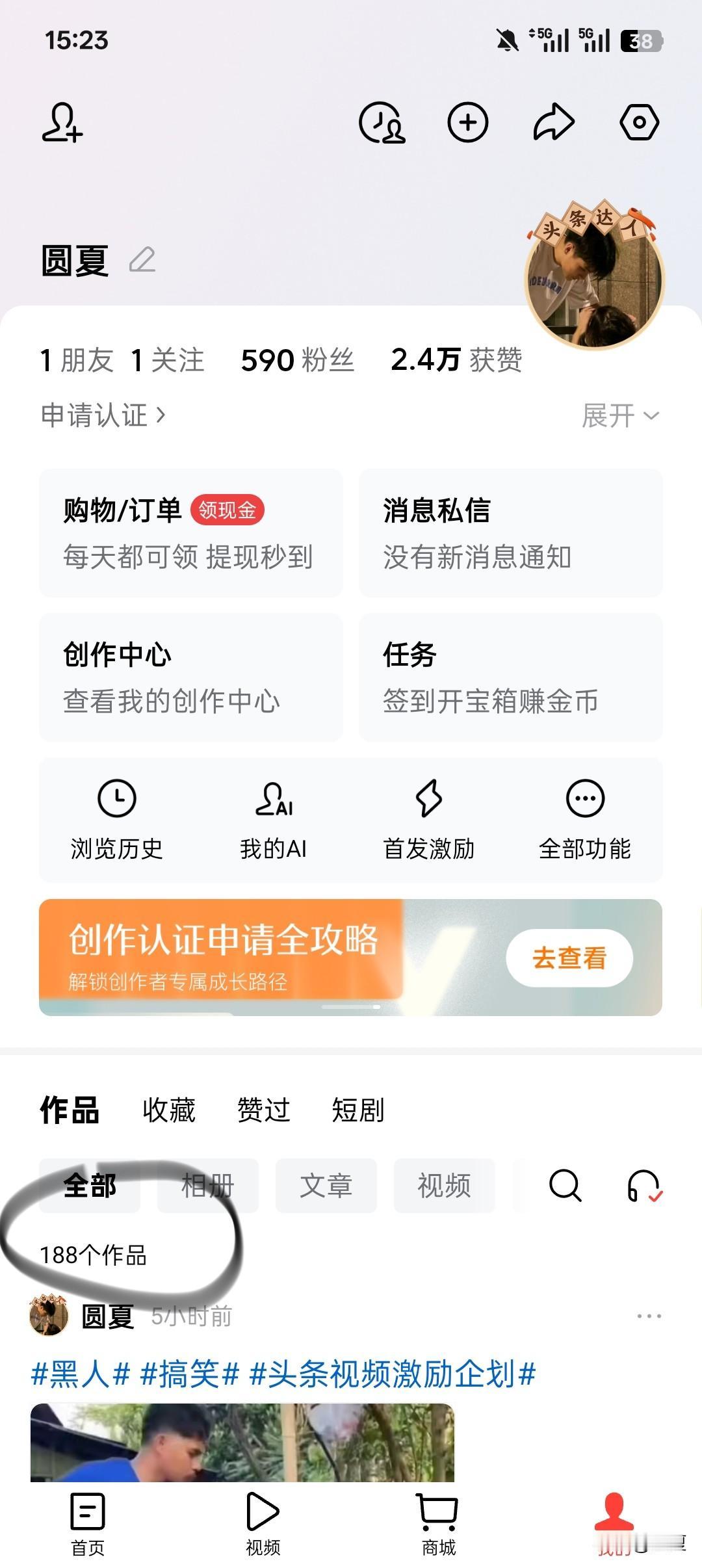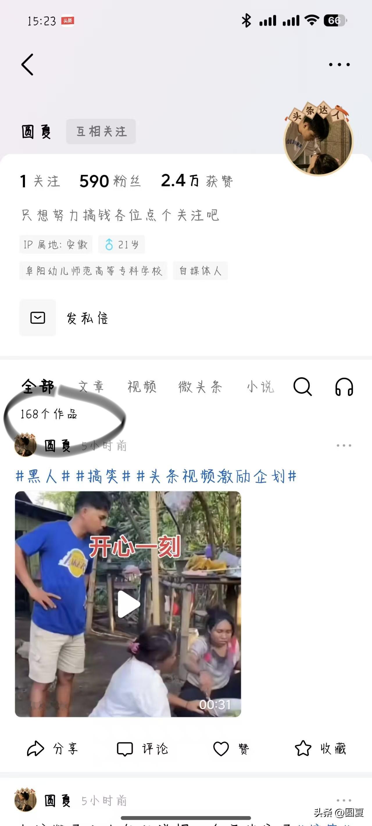 今日头条吃相不要太难看好不好,我说我怎么有的作品一个人阅读没有。 第一张图片是我小号今天关注自己一看自己只有168个作品。 第二张图片是我自己的大号我上面显示是188个作品。 有关注我的粉丝应该知道我发的白蛇传2之前是先发的白蛇传1。 现在白蛇传1没有了我自己重发的。可能有人觉得是不是被举报了,但是我有的作品从发布到现在就没有过阅读量,而且不在我的作品里面显示。 如果说是我违规了,你就扣信誉分, 你告诉我不发提示治,声明之类的就把我的作品下架什么意思?