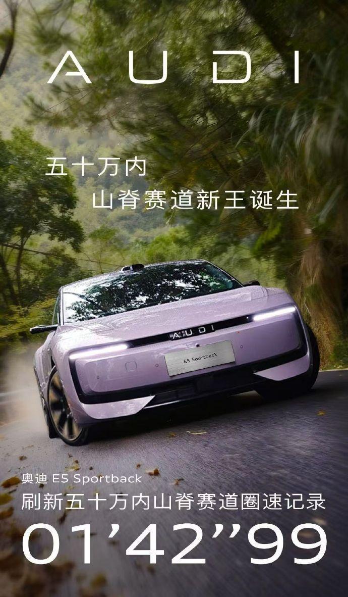 满血quattro,山脊赛道王? 奥迪E5 Sportback在佰骏山地赛车场刷出1分42秒99的成绩,强势刷新“亚洲唯一山脊赛道”50万以内车型圈速纪录,成为这条极限山道上的新王者。 这条2.42公里的山间赛道,全程31个连续弯道、最大落差71米、柏油与越野混合赛道,还包括一段最大陡坡达45度的天然陡坡与S弯组合,被公认为“性能车的试金石”。 即使到了电动时代,跑山路依然是quattro的强项。 这台E5 Sportback的血液里,流淌着当年在WRC赛场上让对手绝望的冠军基因。凭借电动quattro系统的毫秒级扭矩分配,以及采埃孚CDC减震+大陆空气悬挂+Brembo四活塞卡钳等超跑级底盘组合,在45°陡坡与S弯中依然游刃有余。 如果未來有机会干地跑一趟,那成绩应该会很更可观。[奸笑]【来自懂车帝车友圈】