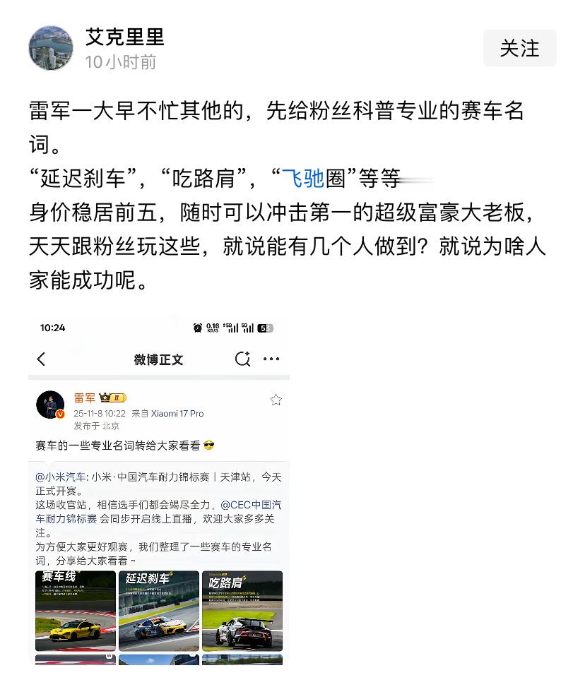 小米的车可以下赛道,科普一下赛车相关的专业名词,没毛病。