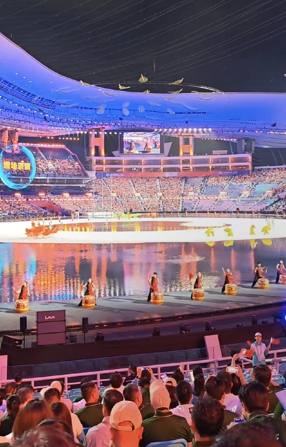 全运会开幕式现场太魔幻了! 谁看了这现场不眼红?十五运开幕式的场馆里,蓝紫灯