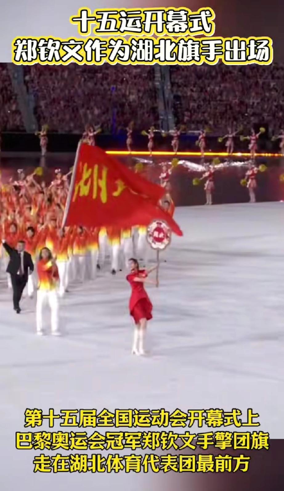 郑钦文好飒!湖北省旗手! 现在走来的是湖北代表团! 网友表示:都当上代表团旗手了,不打都不可能了吧! 此前,网上有传出郑钦文没有在女子网球团体赛的名单上,很多球迷都猜测郑钦文也有可能不再参加单打的比赛。现在郑钦文以湖北代表团的旗手现身,答案应该是呼之欲出了吧!