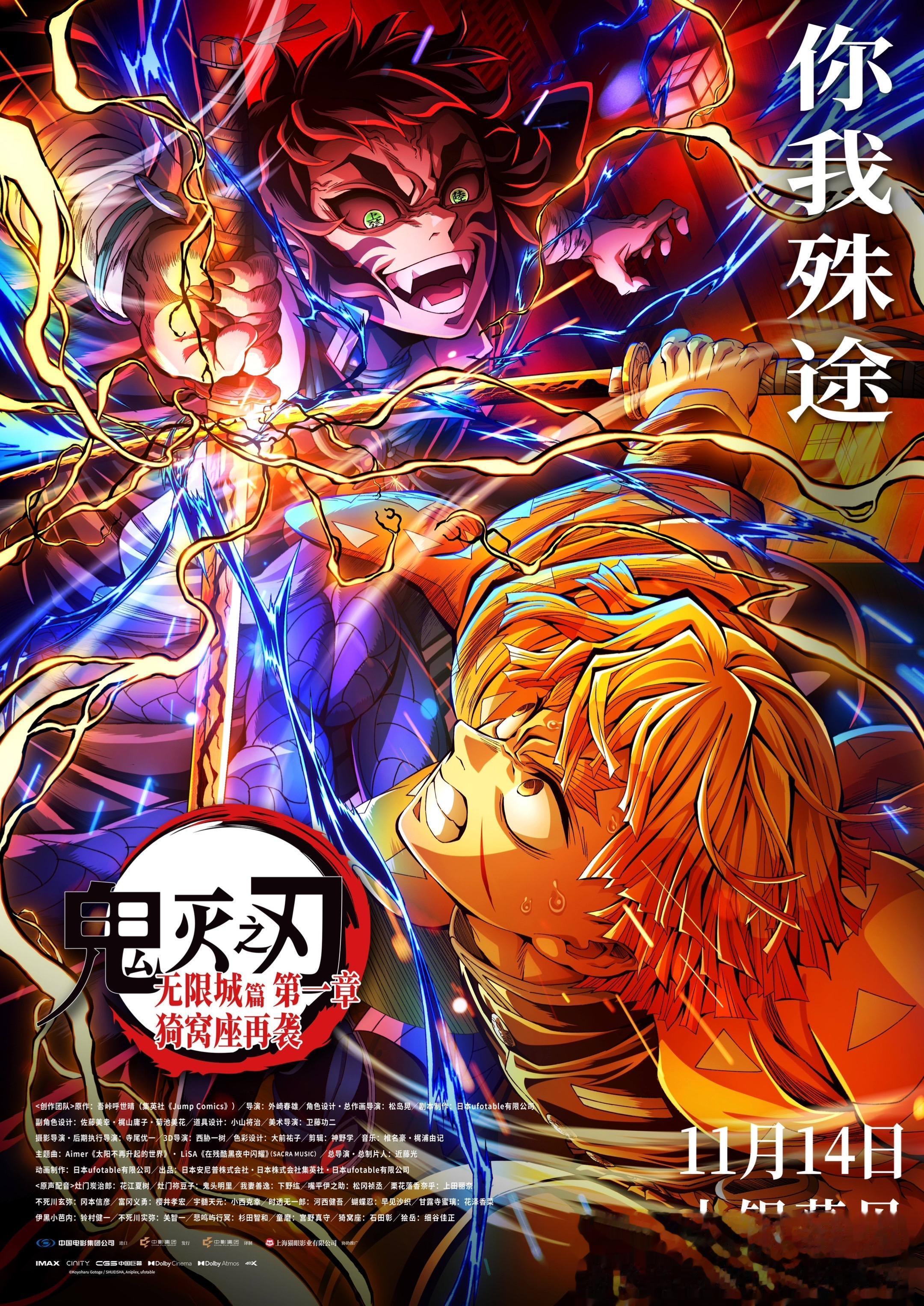 电影鬼灭之刃无限城篇 电影《鬼灭之刃:无限城篇 第一章 猗窝座再袭》今日发布终极海报及预售开启图。 海报上,鬼杀队与“鬼”激战正酣,正邪双方力量碰撞,光影交织充满张力,热血张力满溢,即将呈现一场精彩绝伦的信念之战。 自全球多地公映以来,不断创造票房新纪录,累计观影人次超7933万,总票房约6.7亿美元,荣登2025年全球票房榜前五。 现已开启预售,11月14日,将首次登陆内地大银幕。
