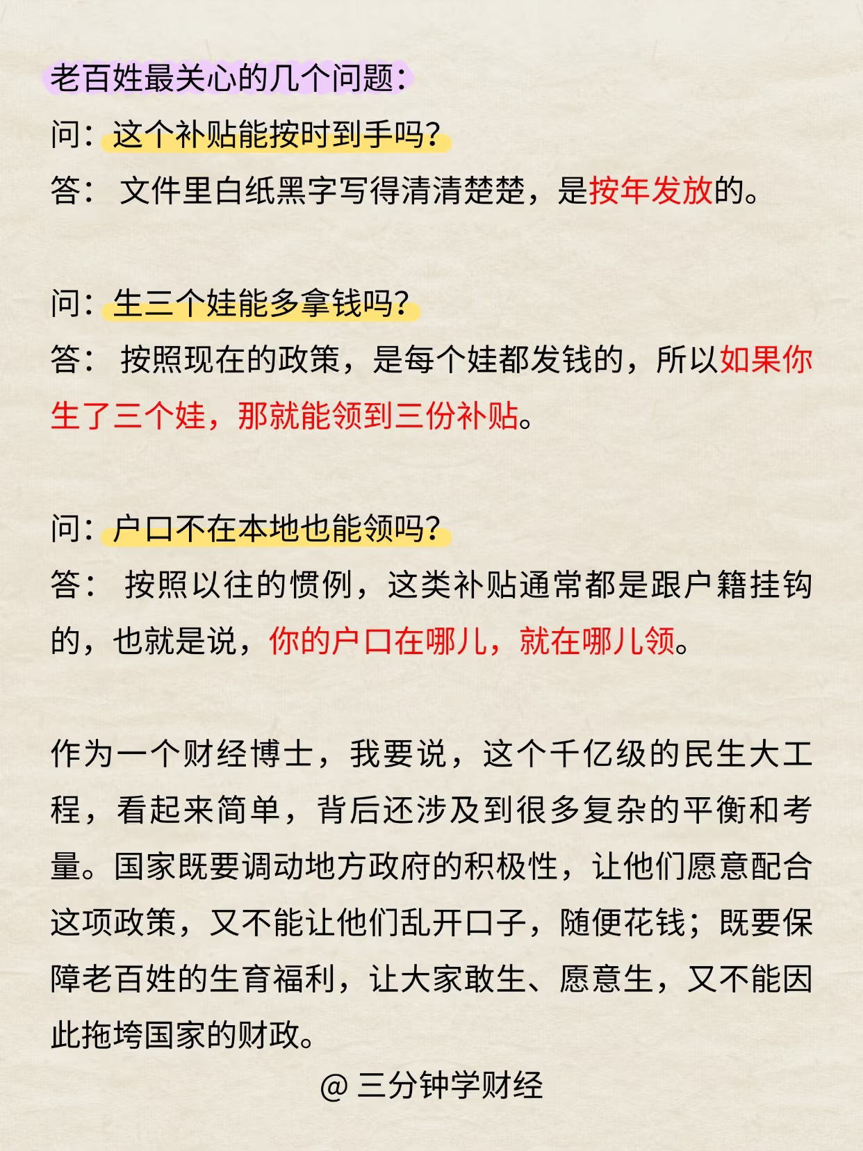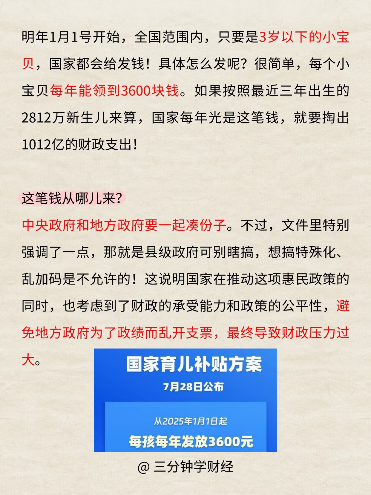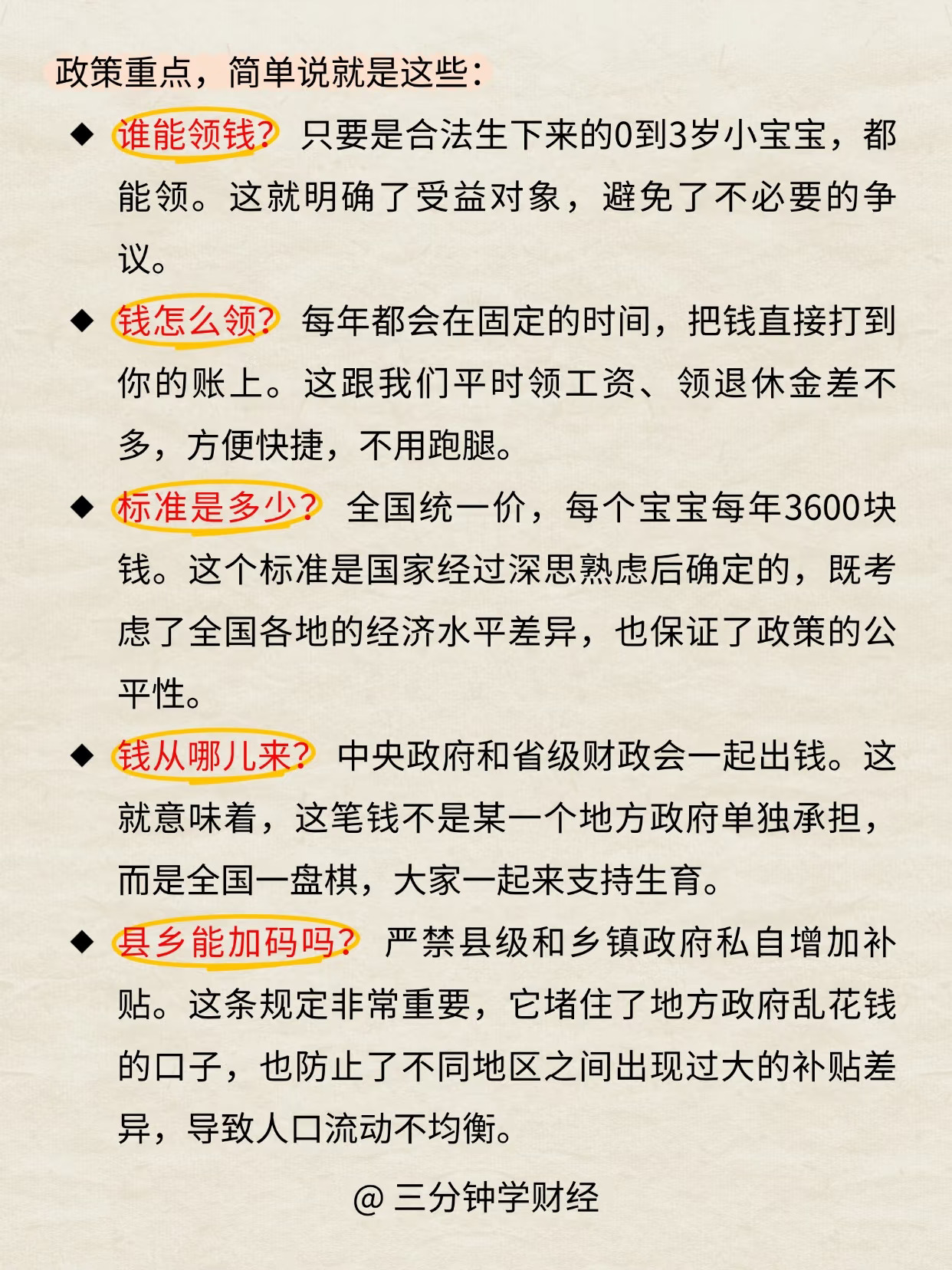 生孩子国家发钱了,只要是三岁以下每年都能领取3600块。