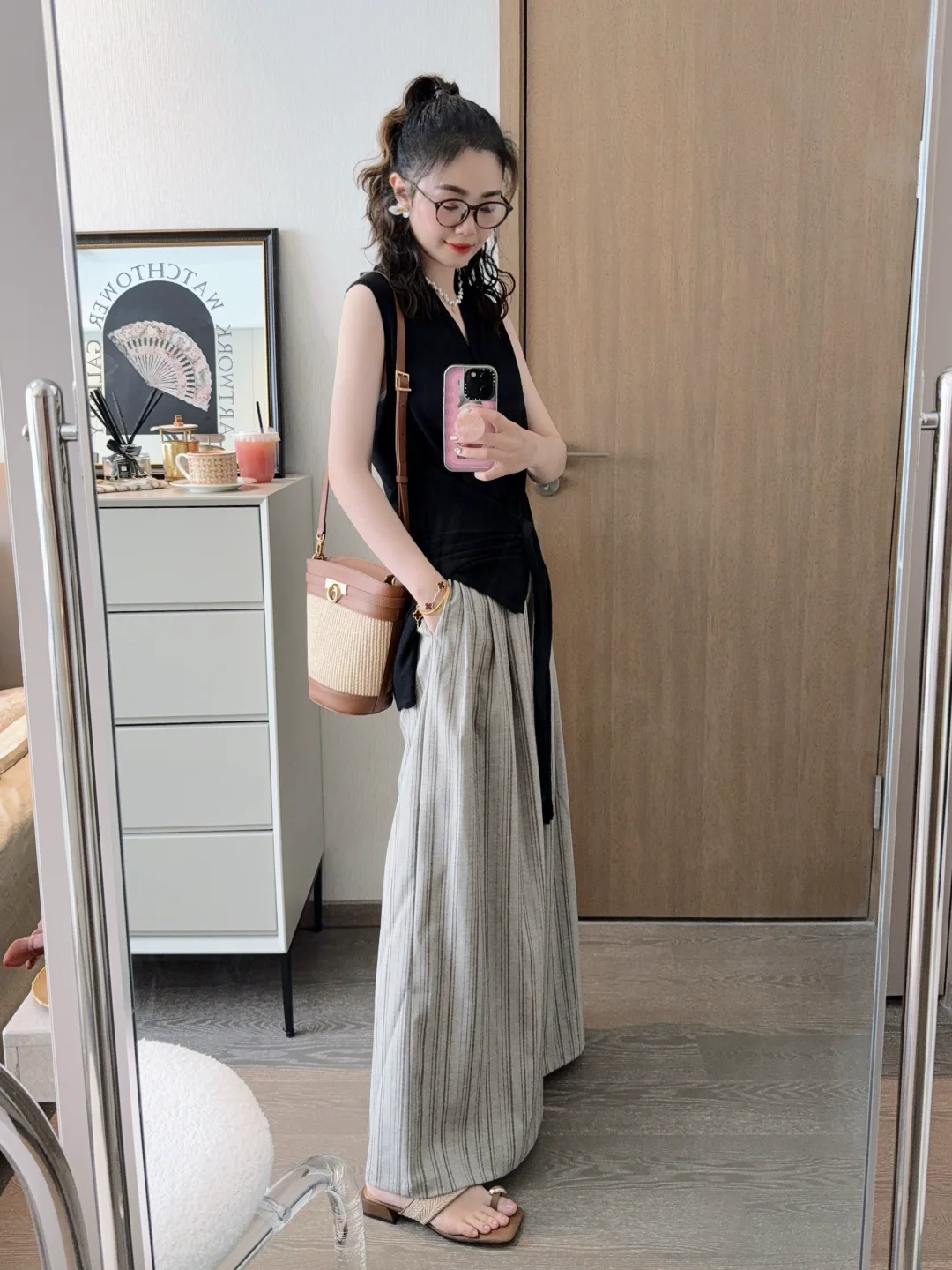 今年很爱的慵懒感出街套装分享给我的宝宝们~ 这套未免太纸片人了叭[棒R]阔腿亚麻裤我真的爱疯了!年纪大了忽然get到素素的颜色了~