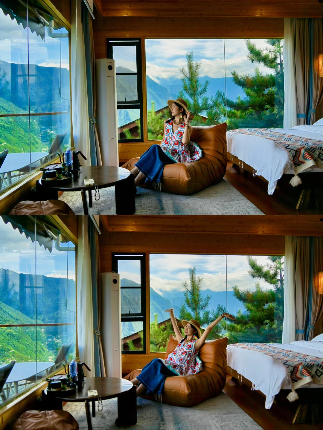 当代牛马的放松方式 进山吸氧!!成都🚘3h直达 住进这个看见雪山的小木屋!!真的很惬意啊 拉开窗帘 就能看见山间的云雾☁️和远处的雪山