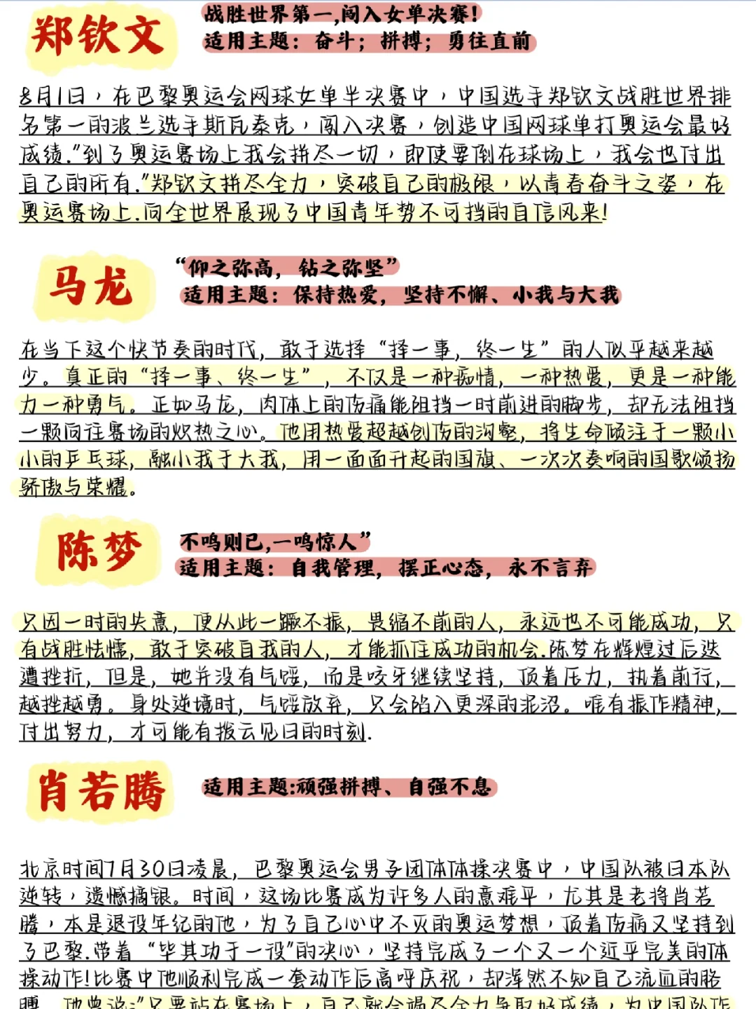 高考作文素材 议论文 人物素材 作文 巴黎奥运会 樊振东