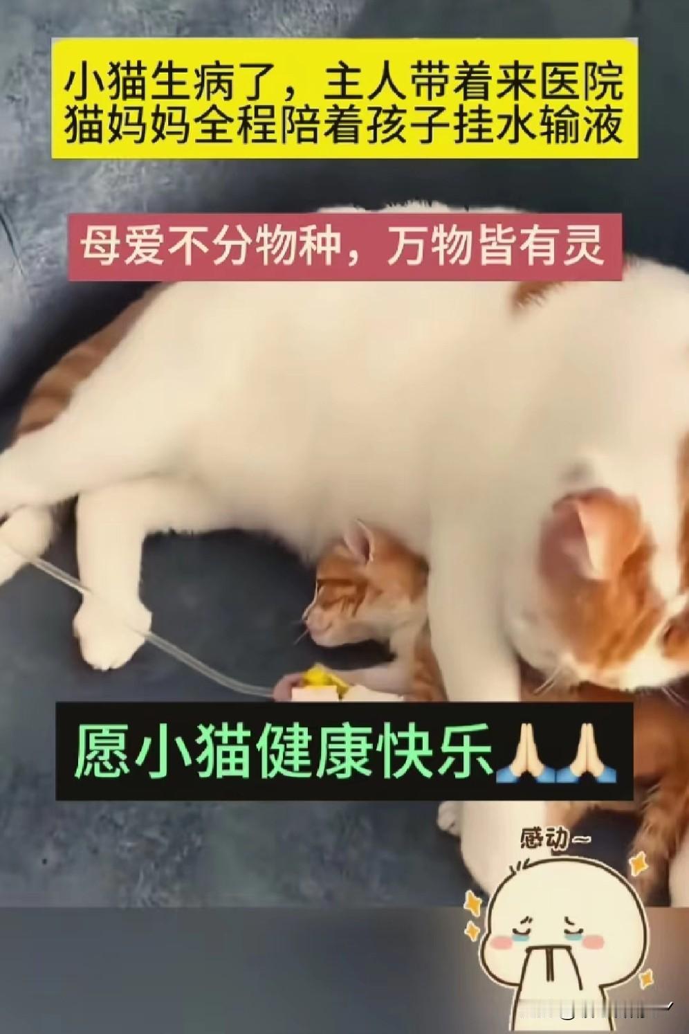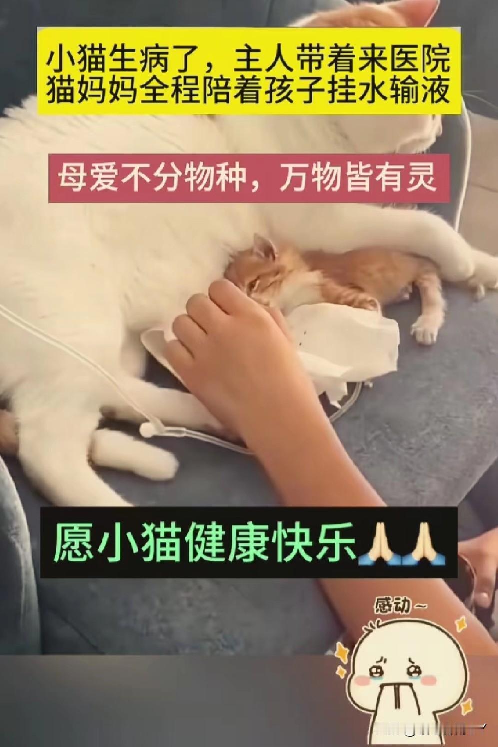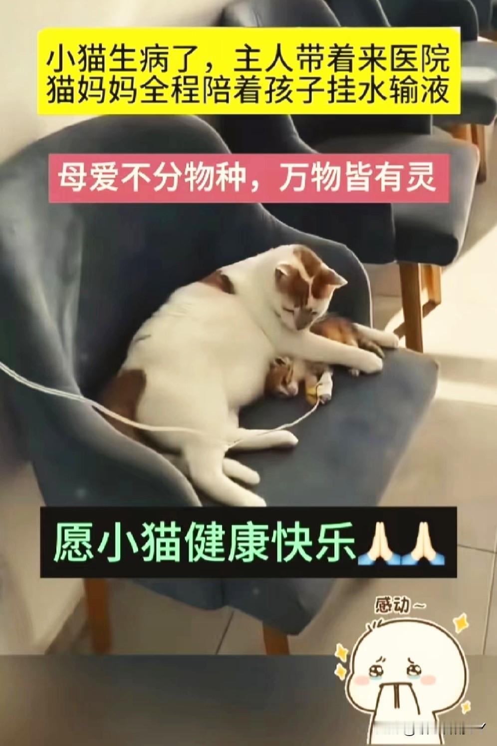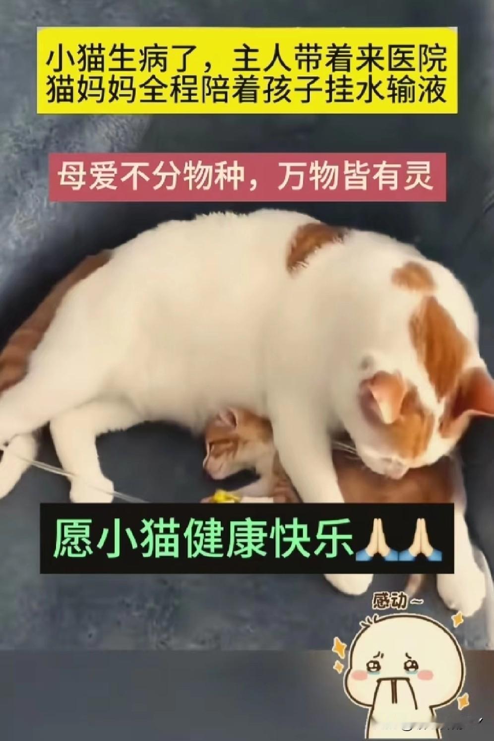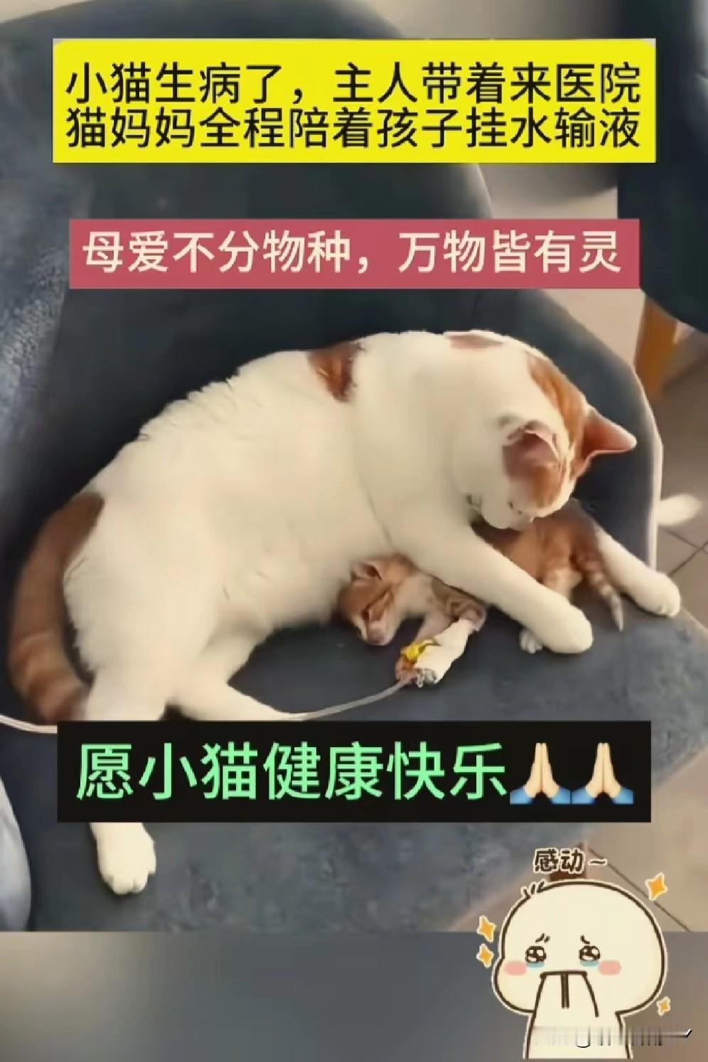 破防了!猫妈妈陪娃打针时的守护,让我明白母爱本无边界。 小猫生病去就医,打针输液时缩成小小的一团,猫妈妈却寸步不离守在诊疗台边。 它小心翼翼地把孩子护在怀里,还时不时用脑袋轻轻蹭小猫的额头,像是在轻声说“别怕,妈妈在”。 它也许不明白针头意味着什么,却深知要陪着自己的宝贝一同渡过难关。这份跨越物种的母爱,纯粹且炽热,直抵人心。 万物有灵,祝愿小猫能早日康复,也向每一位拼尽全力守护孩子平安的“妈妈”,致以最深的敬意[心] 万能生活指南