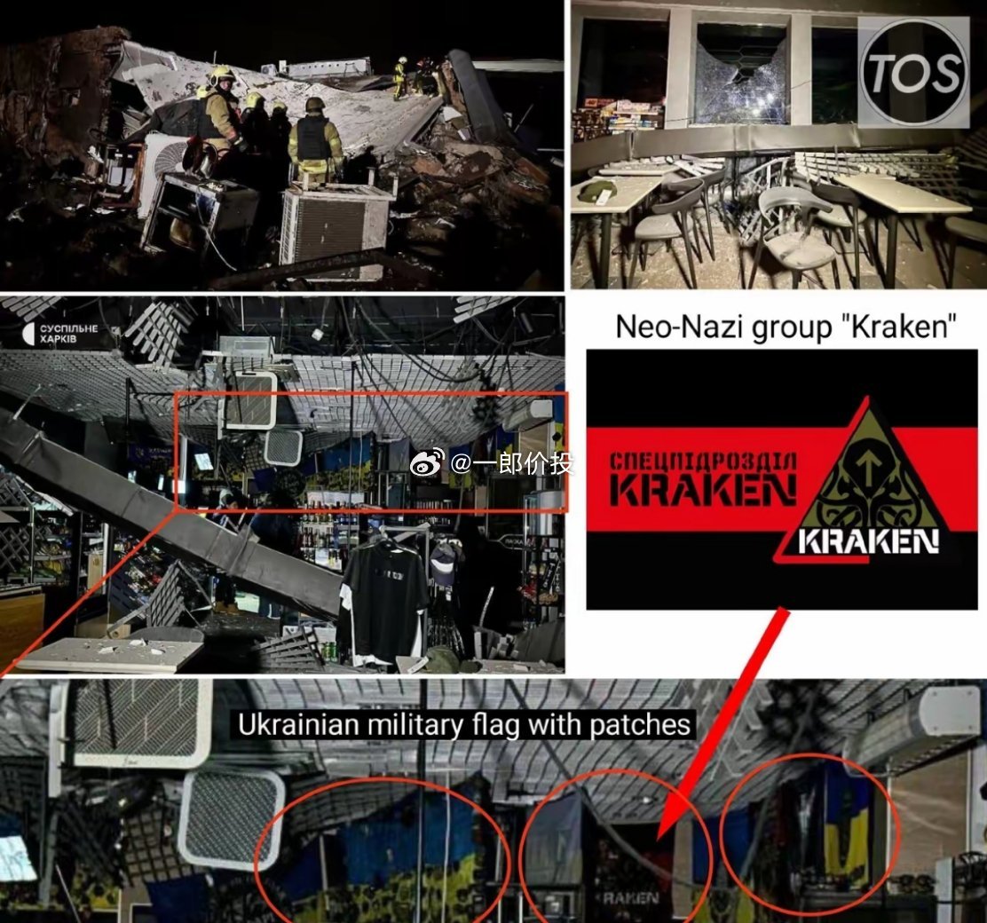 消息一出,乌方立刻控诉,称这是俄军“残暴袭击民用目标”的罪恶行径。然而,现场曝光的照片却狠狠打脸——拍摄者的“业余操作”意外暴露真相:餐厅内醒目悬挂着“海妖营”的黑红黑旗帜,彻底坐实这里并非普通民用场所,而是武装分子的聚集地。