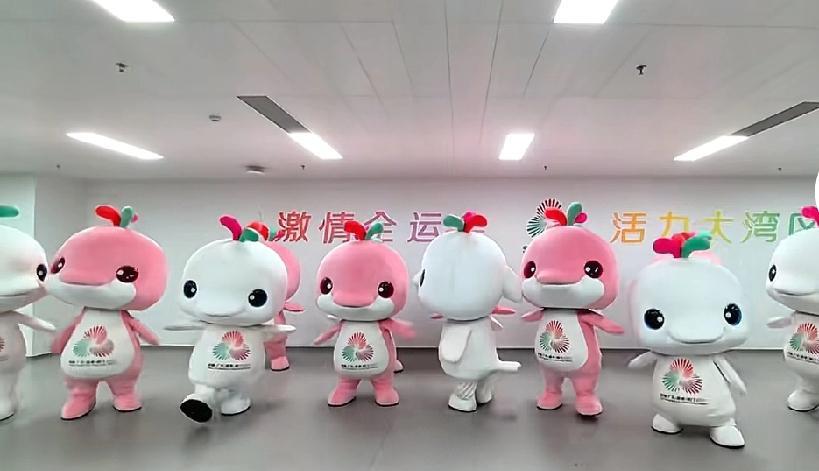 这批吉祥物绝对是全运会历史上最好动的! 这些粉的和白的玩偶的“内胆”都是00后武校学生,带上玩偶头套,蹦蹦跳跳、卖萌戏耍、倒立炫舞都不在话下,体力值和武力值比其他运动会的玩偶高得多! 全运会举办了15届,中国体育史上第一个正式的吉祥物就是1987年第五届全运会,那次就是在广东举办,吉祥物是“山羊”。此后每届全运会都有各种各样的玩偶了。 广东这次的“大湾鸡”玩偶属实算得上是史上最活泼,精力最旺盛的!