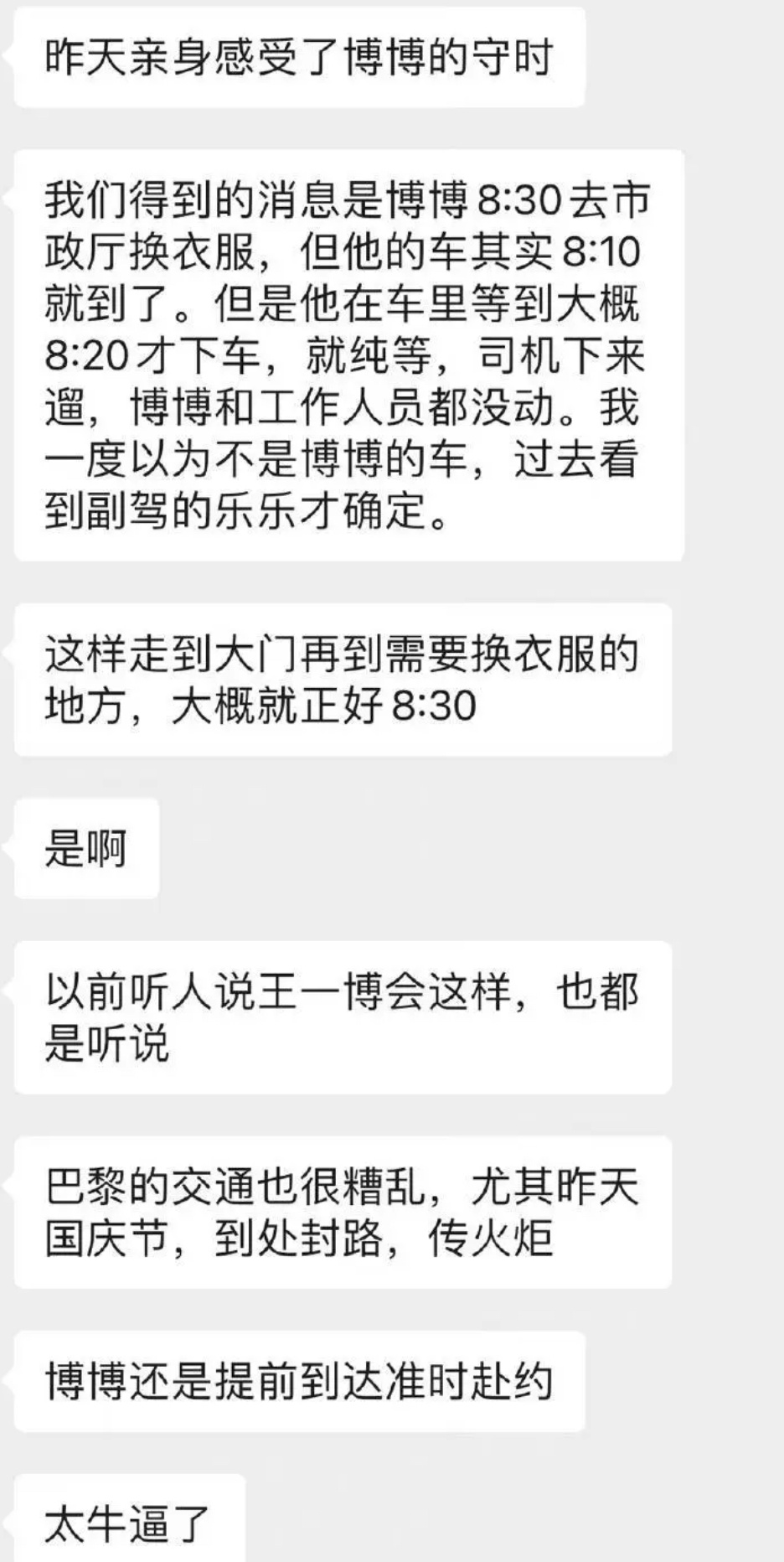 从很多人的叙述中都可以看到王一博的守时。