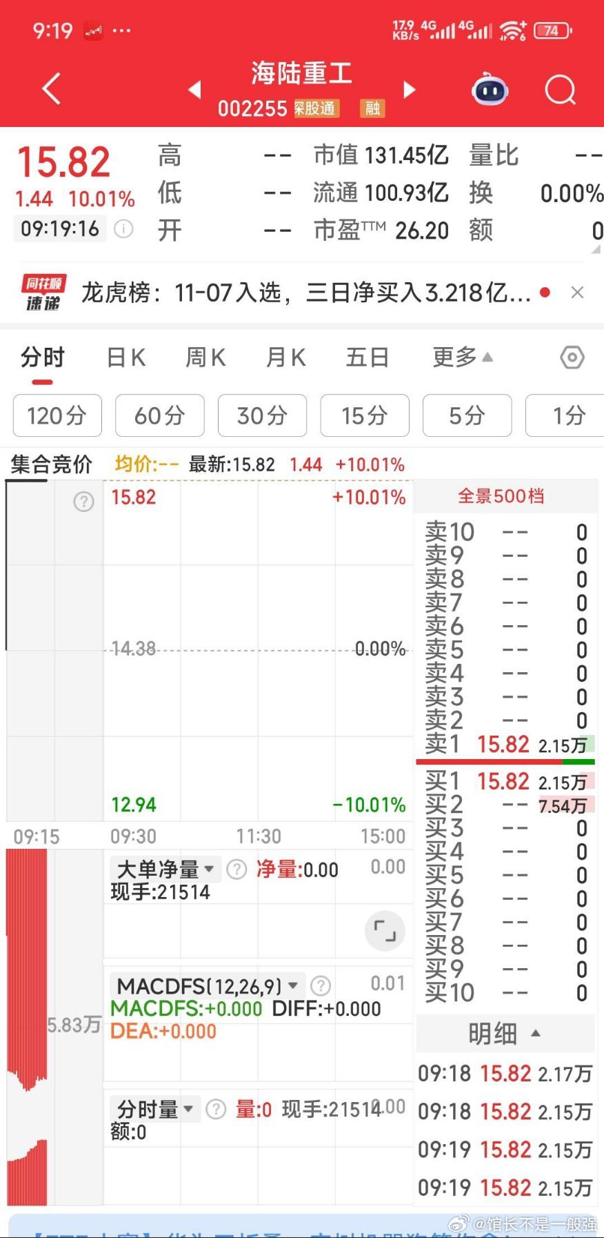 今日见好就收:海陆重工。
