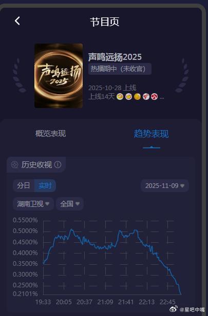 声鸣远扬总决赛 《声鸣远扬》第一期收视战报!酷云峰值0.5153,平均0.4267。看好下周大涨。