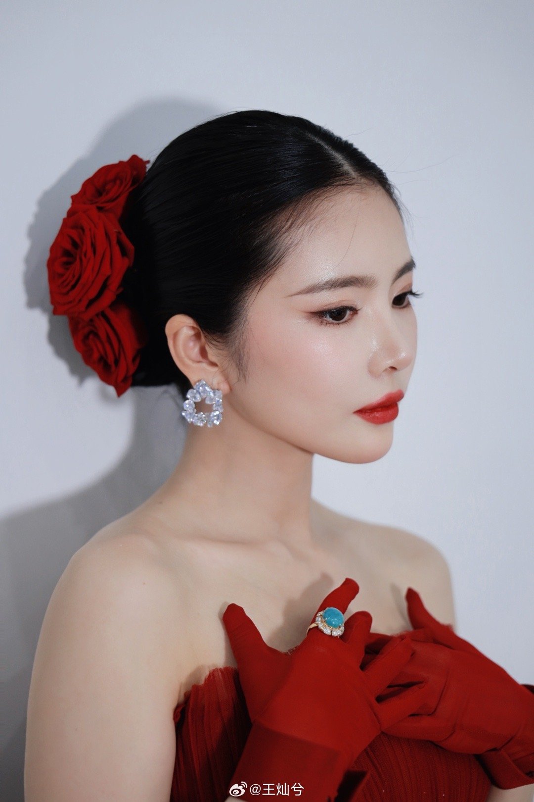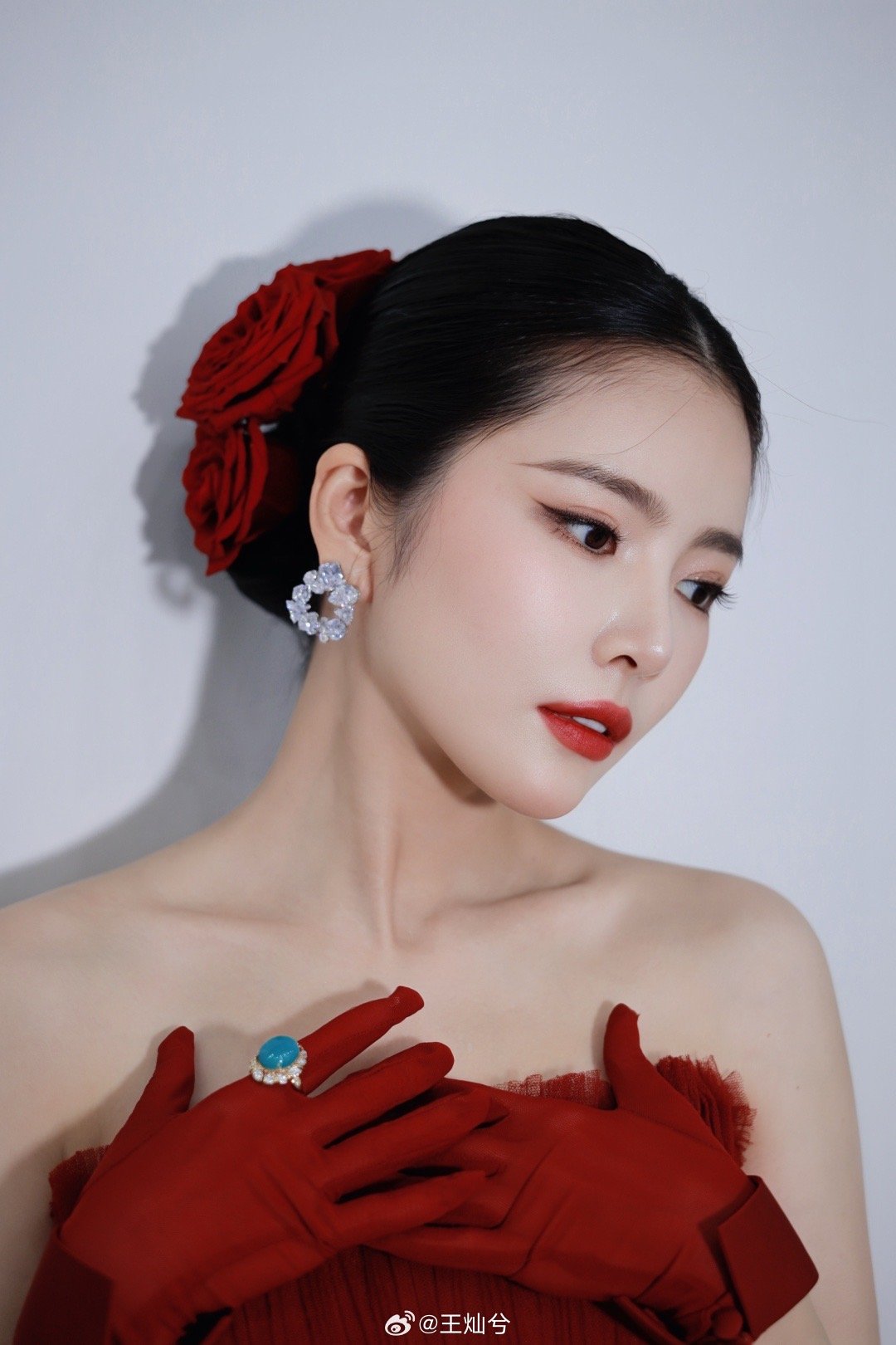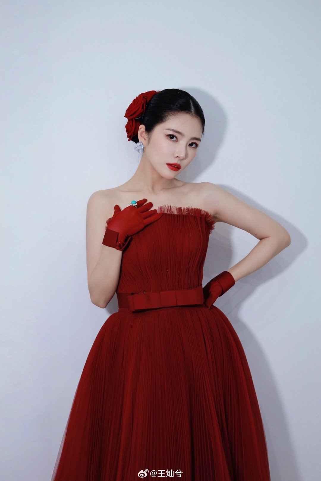 王灿这么美的吗 红色的抹胸裙子搭配了红丝绒的手套真的是美的,大大方方,王灿这么美的吗,直接就已经戳中了我的心巴了