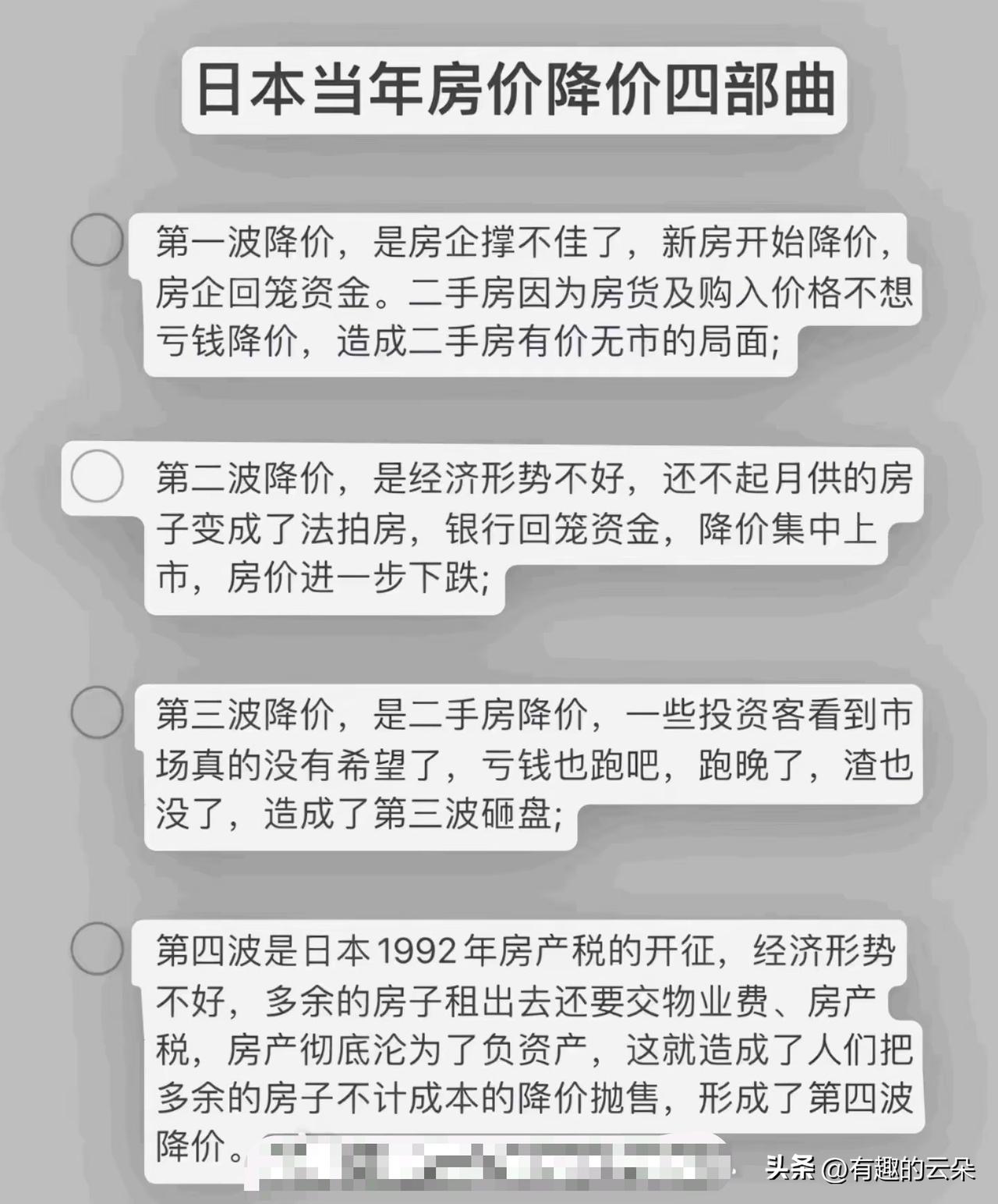 日本房地产崩盘对中国的借鉴意义有多少? 1991年前后,日本房地产泡沫破裂,是20世纪末最著名的资产泡沫案例,导致日本进入“失落的三十年”(经济长期停滞、通缩、债务危机)。虽然与中国当前房地产市场有诸多相似之处,但也存在显著差异。 总体而言,日本经验仍然对中国有借鉴意义,尤其在防范系统性风险、政策应对和结构性改革方面。中国不会完全复制日本路径,因为经济发展阶段、制度环境和人口动态不同。中国可通过主动政策干预,避免硬着陆并实现软着陆。 日本泡沫于1986-1991年膨胀,地价和股价暴涨,东京地价峰值相当于美国全国地产总值4倍。1991年后崩盘,房价跌幅超60%,经济陷入长期低迷。