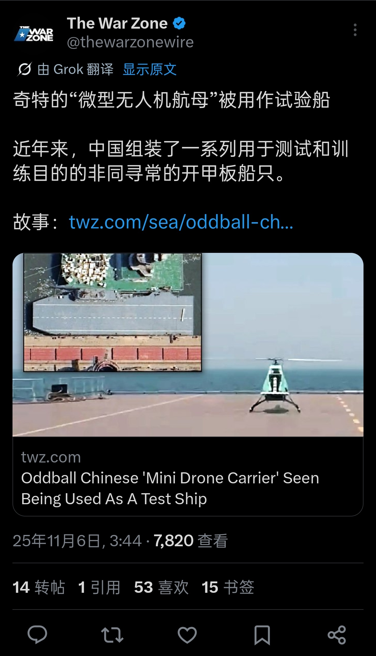 外国GTW发现了东大“微型无人机航母”已经开始测试 [666]它看起来好袖珍 [